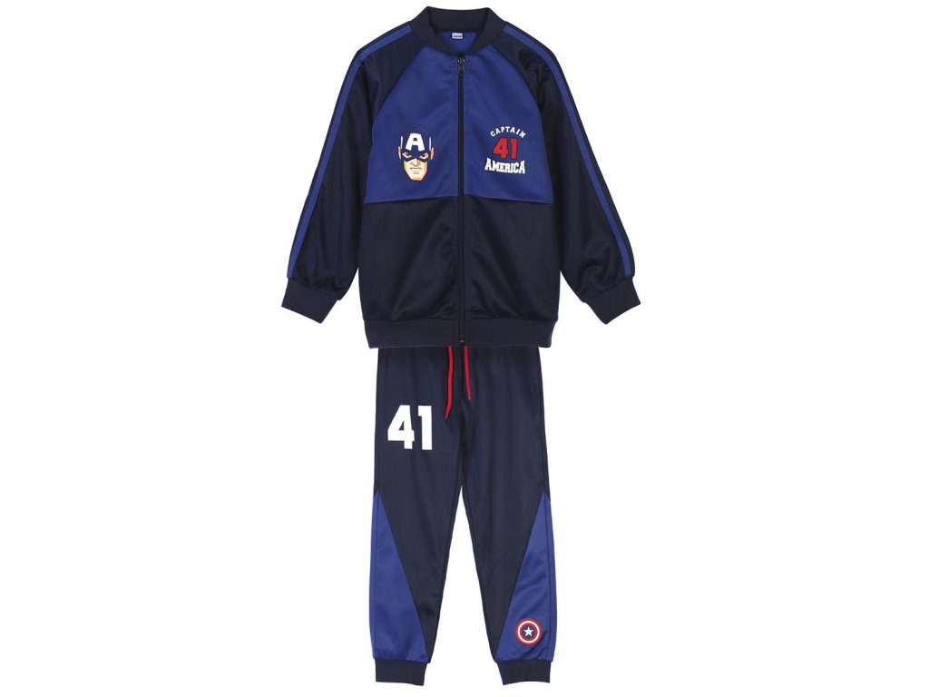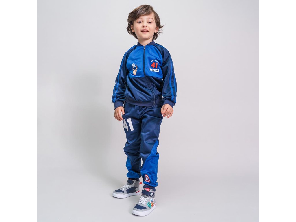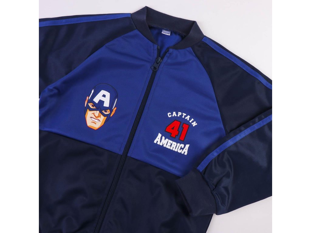 Oficiální produkt - dětská tepláková souprava z katalogu fashion a dárkových výrobků s grafikou, logem a licencí populárního superhrdiny jménem Captain America od společnosti Marvel.