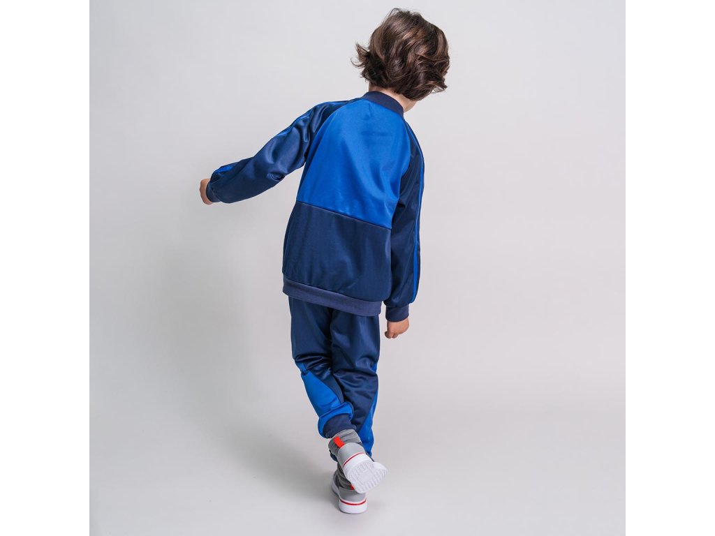 Atraktivní tepláková souprava s tmavě modrou mikinou na zip s dlouhým rukávem, vyvedeným s grafikou loga Kapitána Ameriky a tmavě modrými dlouhými teplákami. S touto stylovou teplákovou soupravou nebude mít žádný fanoušek problém jít zachraňovat město.