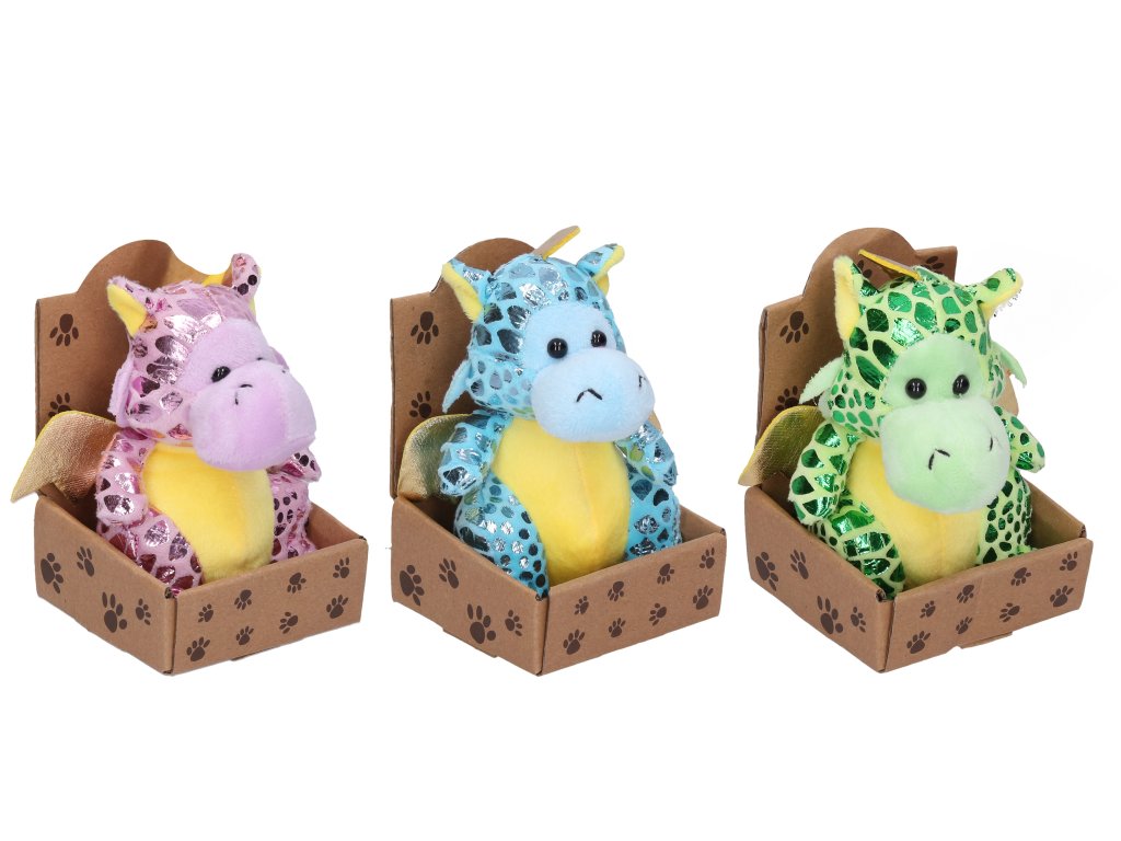 Drak. Velikost 13 cm. 12 ks display box. Více variant - fialová, zelená, modrá.