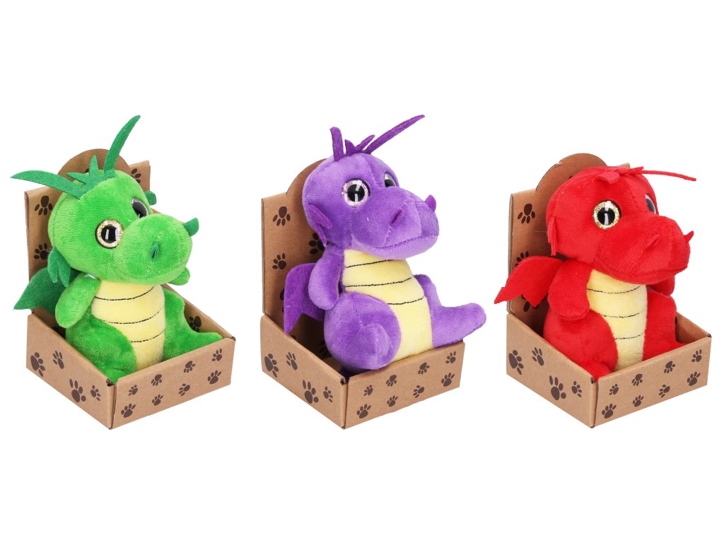 Drak. Velikost 13 cm. 12 ks display box. Více variant - fialová, zelená, červená.
