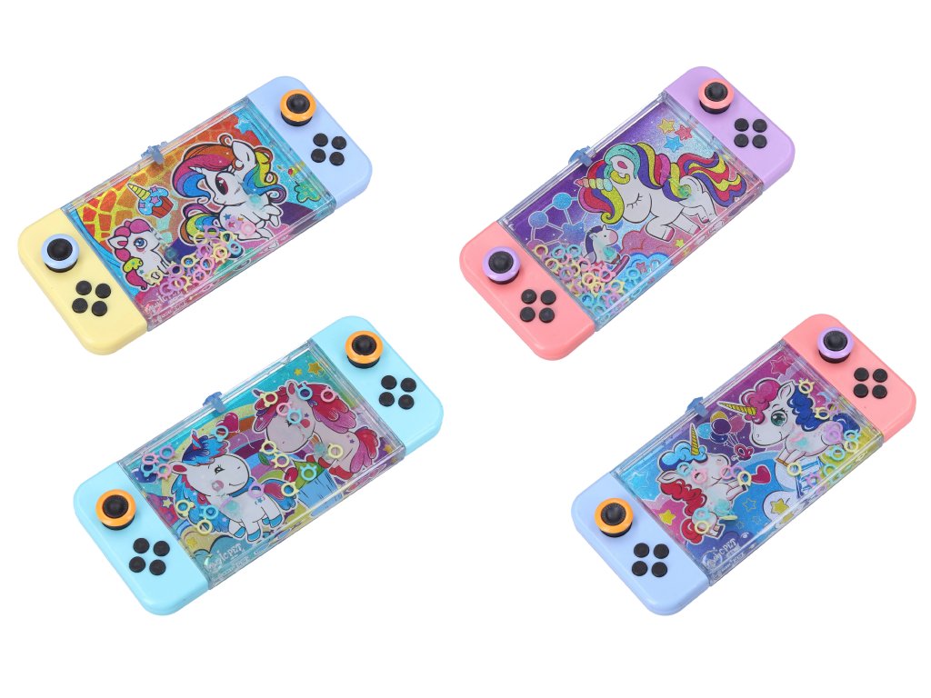 Vodní hra jednorožec. Rozměry 17x7,5x3 cm. 12 ks display box. 4 varianty.