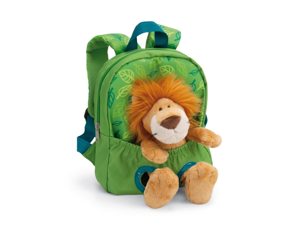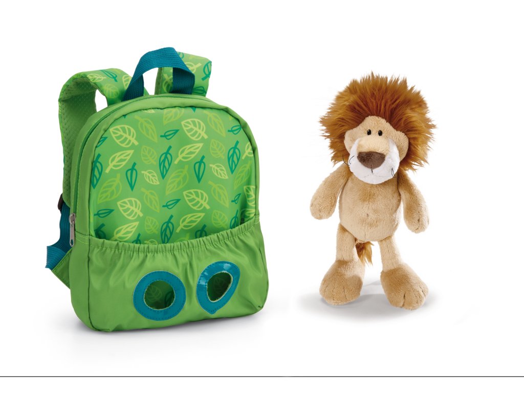 Dětský batoh s plyšovou hračkou Lev. Kdo by chtěl odejít z domova bez své oblíbené plyšové hračky? Batoh NICI v zeleném designu s motivem lístečků spojuje okouzlující mazlení s funkčností univerzálního dětského batohu. Jedinečný lev z heboučkého měkkého plyše NICI sedí na místě v samostatně připevněné kapse s gumičkou a sleduje svět ze zad dítěte. 25 cm plyšové zvířátko lze snadno vyjmout a mazlit se, hrát si a kochat se. Polstrované a nastavitelné ramenní popruhy a příjemně měkká zádová oblast v osvědčené kvalitě NICI zajišťují dobrý komfort nošení. Batoh s integrovanou jmenovkou je skvělým dárkem a ideálním společníkem pro všechny malé dobrodruhy, objevitele světa a baťůžkáře. Nastavitelná délka ramenních popruhů, jedna hlavní kapsa se zavíráním na zip. Výška plyšového lva: 25 cm. Rozměry batohu: 26 x 21 x 13 cm. Věk: 3+