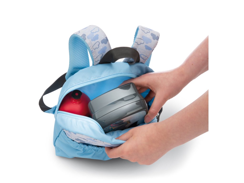 Dětský batoh s plyšovou hračkou Mýval. Kdo by chtěl odejít z domova bez své oblíbené plyšové hračky? Batoh NICI v modrém designu s motivem mráčků spojuje okouzlující mazlení s funkčností univerzálního dětského batohu. Jedinečný medvídek mýval z heboučkého měkkého plyše NICI sedí na místě v samostatně připevněné kapse s gumičkou a sleduje svět ze zad dítěte. 25 cm plyšové zvířátko lze snadno vyjmout a mazlit se, hrát si a kochat se. Polstrované a nastavitelné ramenní popruhy a příjemně měkká zádová oblast v osvědčené kvalitě NICI zajišťují dobrý komfort nošení. Batoh s integrovanou jmenovkou je skvělým dárkem a ideálním společníkem pro všechny malé dobrodruhy, objevitele světa a baťůžkáře. Nastavitelná délka ramenních popruhů, jedna hlavní kapsa se zavíráním na zip. Výška plyšového mývala: 25 cm. Rozměry batohu: 26 x 21 x 13 cm. Věk: 3+