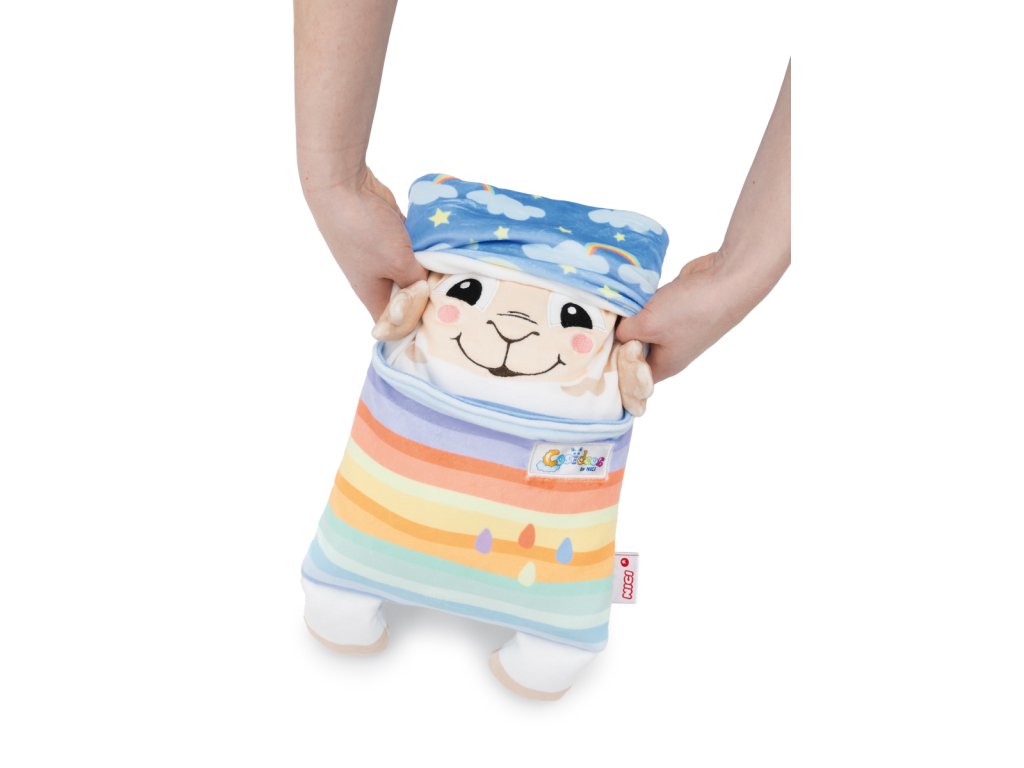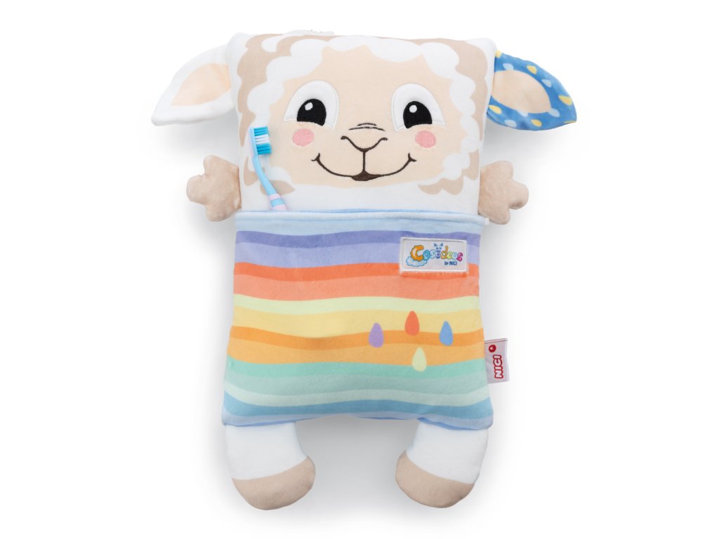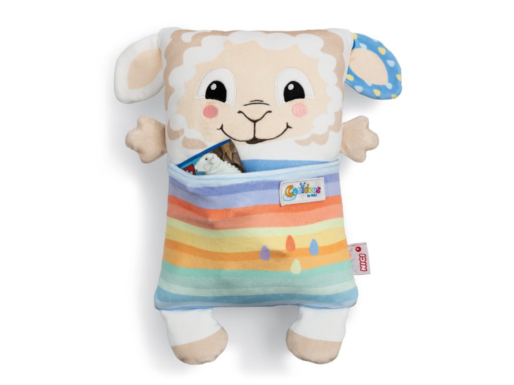 Ovečka Cosidoos je nadýchaná plyšová hračka, kterou lze snadno proměnit z veselého denního společníka v uklidňující zvířátko a polštářek na spaní. Roztomilá ovečka kombinuje zábavu při hraní s pocitem pohody a zároveň podporuje pochopení rytmu dne a noci. Díky tomu se stává přechod k večernímu usínání opravdovým zážitkem. Ovečku lze jediným jednoduchým pohybem ruky snadno převrátit a změnit tak barvy i design podle denní doby. Během dne ovečka Cosidoos podporuje kreativní hru a stimuluje fantazii, zatímco v noci se stává něžným společníkem pro klidný noční spánek. Měkké kapsy jsou ideální pro uložení malých pokladů nebo důležitých předmětů. Oboustranný zázrak vyrobený z vysoce kvalitního, super měkkého plyše NICI je víc než jen hračka – je to věrný přítel, který plynule přechází mezi hrou a odpočinkem. Rozměry hračky: 30 x 20 x 11 cm. Věk 12 m+
