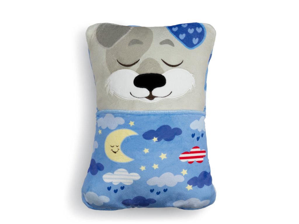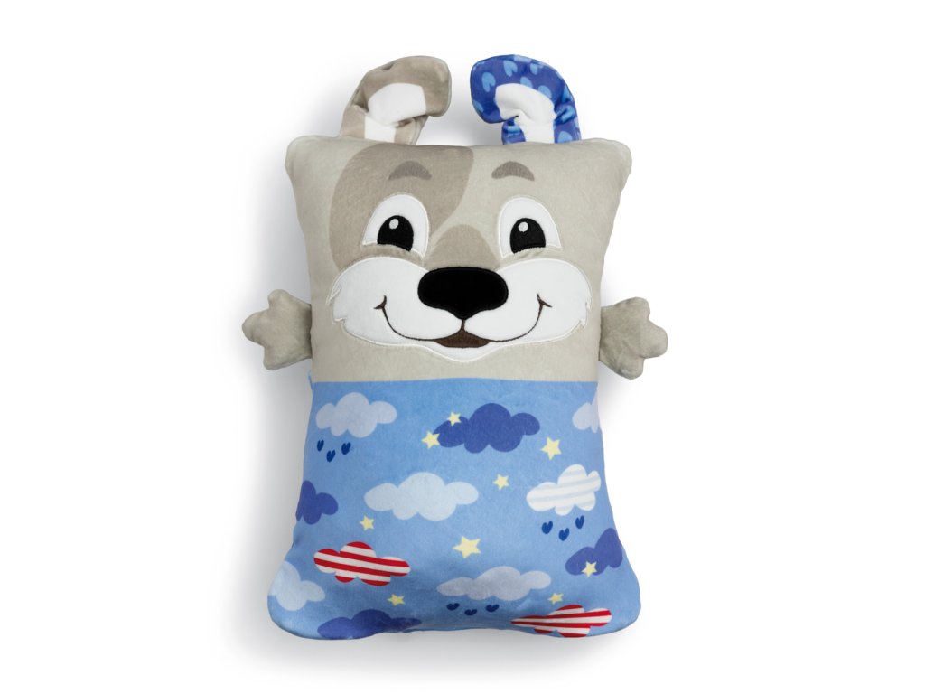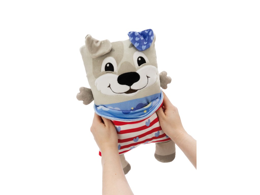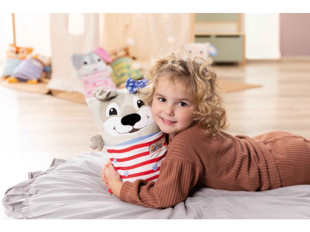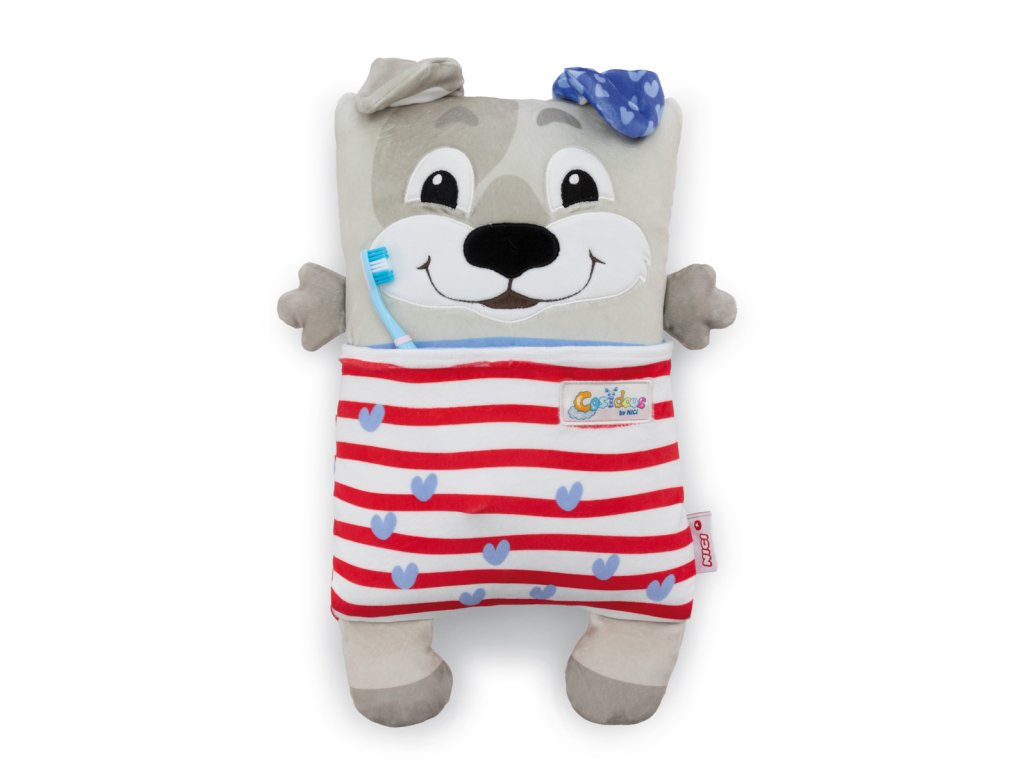 Pejsek Cosidoos je nadýchaná plyšová hračka, kterou lze snadno proměnit z veselého denního společníka v uklidňující zvířátko a polštářek na spaní. Šedý pejsek s modrým uchem kombinuje zábavu při hraní s pocitem pohody a zároveň podporuje pochopení rytmu dne a noci. Díky tomu se stává přechod k večernímu usínání opravdovým zážitkem. Pejska lze jediným jednoduchým pohybem ruky snadno převrátit a změnit tak barvy i design podle denní doby. Během dne pejsek Cosidoos podporuje kreativní hru a stimuluje fantazii, zatímco v noci se stává něžným společníkem pro klidný noční spánek. Měkké kapsy jsou ideální pro uložení malých pokladů nebo důležitých předmětů. Oboustranný zázrak vyrobený z vysoce kvalitního, super měkkého plyše NICI je víc než jen hračka – je to věrný přítel, který plynule přechází mezi hrou a odpočinkem. Rozměry hračky: 30 x 20 x 11 cm. Věk 12 m+