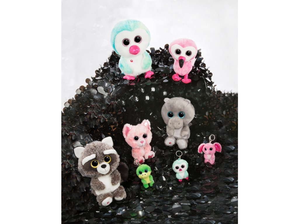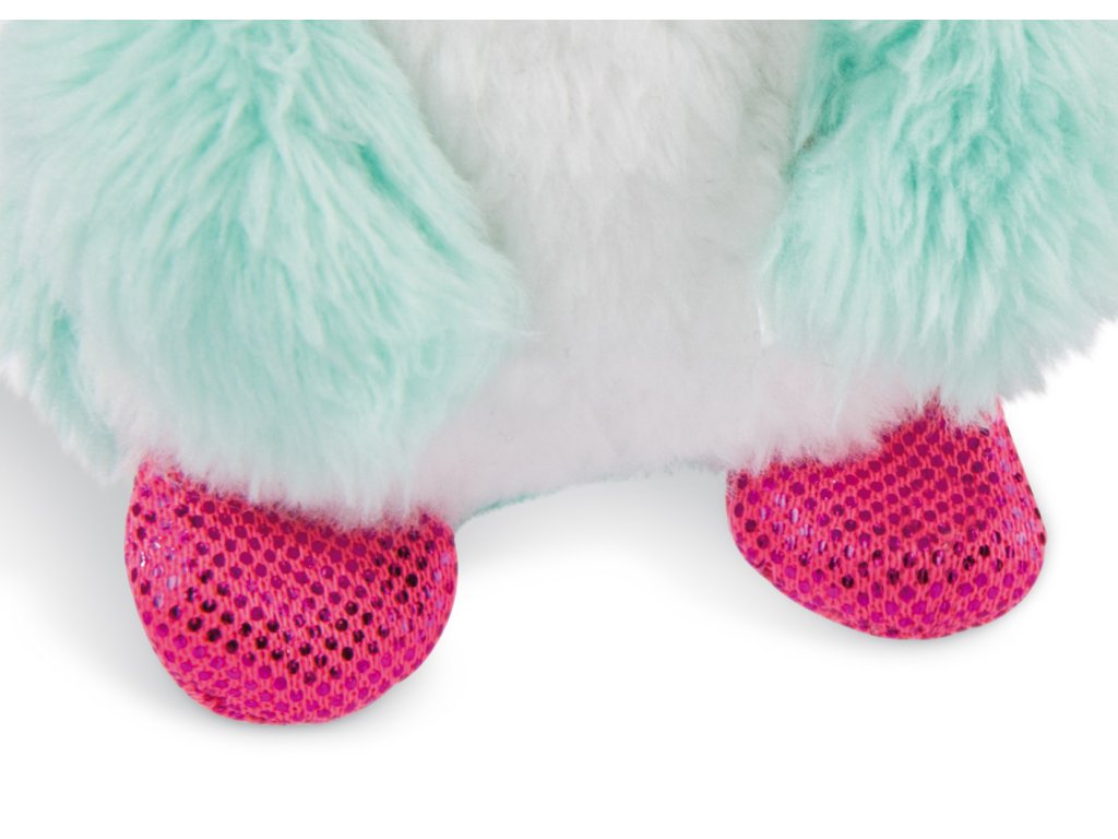Tučňák Yoniko s jeho plyšovou mátovou srstí a velkýma růžovýma třpytivýma očima je opravdovým lákadlem pro oči. Růžové drobné nožky z něj dělají roztomilého společníka! Malý přívěsek na klíče Yoniko se na vás těší! Rozměry: 9cm Věk: 3+