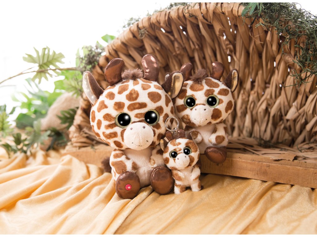 Žirafa Halla má hnědé skvrny, jak se na pravou žirafu sluší. Jak je pro GLUBSCHI typické, má velké třpytivé oči a na hlavě okouzlující chomáč hnědých vlasů. Jako klíčenka vás Halla může doprovázet všude. Výška: 9cm Věk :3+