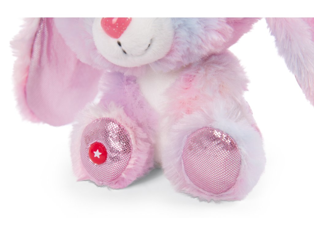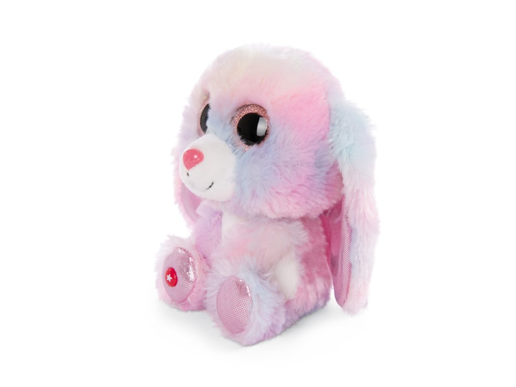 Roztomilý duhový králíček s růžovýma třpytivýma očima. V sérii GREEN od Nici se téměř výhradně používají plyšové a výplňové materiály vyrobené z recyklovaných materiálů. Výška: 15cm. Věk: 0+