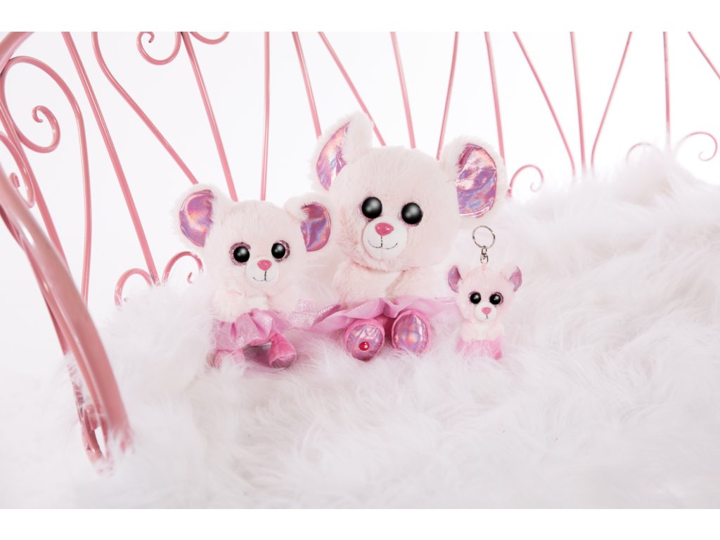 Růžová myš s růžovým třpytivým nosem a třpytivýma očkama. To je baletní myš Yammy z naší kolekce baletek GLUBSCHIS. Cukrovou třešničkou na dortu je růžová tutu sukýnka. Výška: 15cm Věk: 0+
