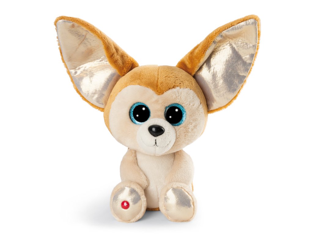 Jako nejmenší z liščí čeledi se fenek Fenfen cítí jako doma nejen na Sahaře, ale i v dětských pokojích. Jeho hebká plyšová srst má barvu pouštního písku a obrovské špičaté uši jsou pokryté lesklou zlatou látkou. Unikátní fenek Fenfen z kolekce GLUBSCHIS vás zaujme svým rozkošným výrazem obličeje a velkýma modrýma třpytivýma očima. Hvězda NICI na chodidle Fenfena zaručuje, že se jedná o originální postavičku GLUBSCHIS od NICI. Rozměr hračky: 25 x 15 x 12 cm. Věk: 0+