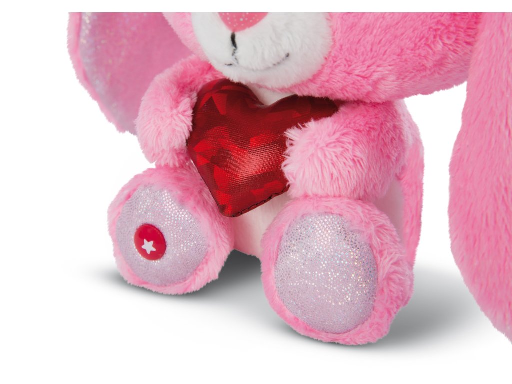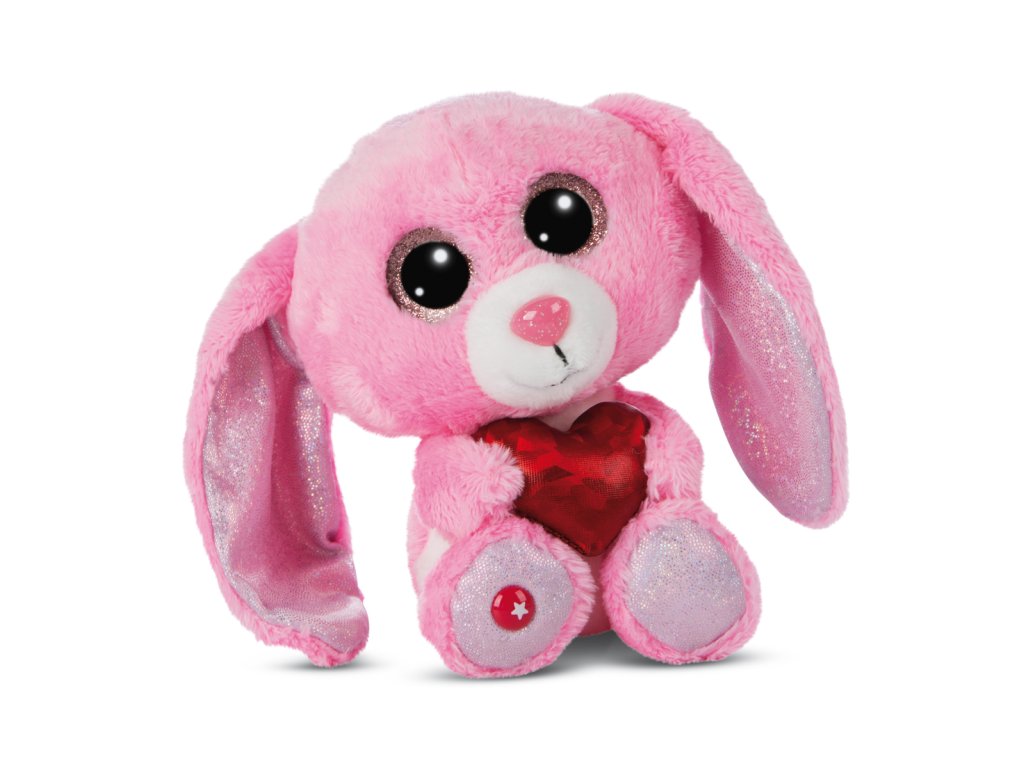 Růžový plyšový králíček Hearty Kay vás okouzlí svým sladkým kožíškem. Má třpytivé oči, nožky a vnitřky oušek a v náručí drží srdíčko, takže má doslova srdce na dlani. Králíček patří do nové kolekce NICI Green, která téměř výhradně používá plyš a výplně vyrobené z recyklovaných materiálů, jako jsou použíté PET lahve. Výška: 15cm Věk: 0+