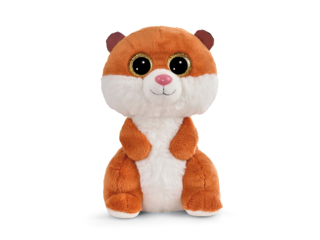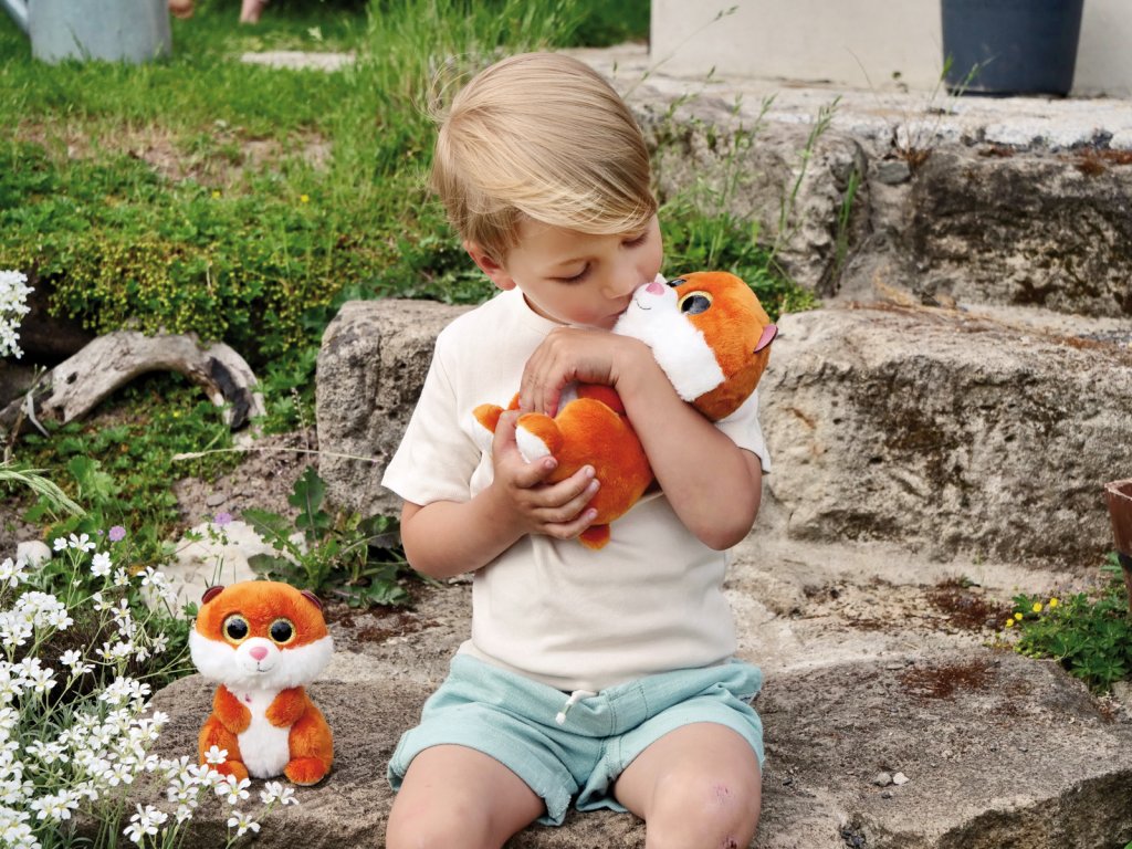 Sladký ryšavý křeček s třpytivýma očima a hebkým kožíškem. V sérii GREEN od Nici se téměř výhradně používají plyšové a výplňové materiály vyrobené z recyklovaných materiálů. Rozměr: 25cm. Věk: 0