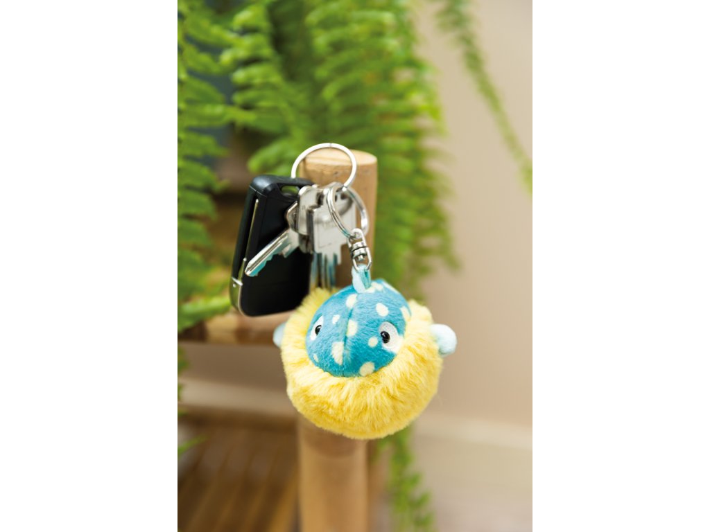 Klíčenka Blowfish Volker NICI GREEN. Ať už jako dárek nebo jen pro sebe – tato oblá rybička s legračníma očima a veselým zbarvením vás bude doprovázet jako 8 cm klíčenka z kvalitního plyše. Plyšovou klíčenku lze pomocí pevného kovového kroužku připevnit na klíče, batoh, školní tašku nebo peněženku. Klíčenka je součástí světa produktů NICI GREEN. Pro produkty NICI GREEN se používá téměř výhradně plyš a výplňový materiál vyrobený z recyklovaných materiálů. Rozměry klíčenky: 5,5 x 8 x 8,5 cm. Věk 3+