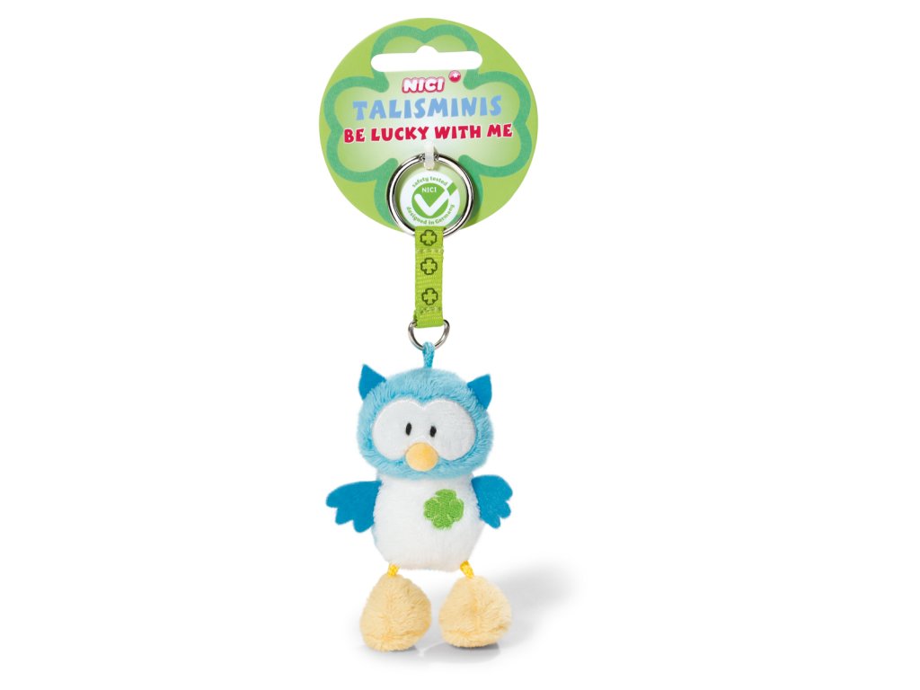 Veselá modrá sovička s kroužkem jako klíčenka. Výška: 7cm. Věk: 3+