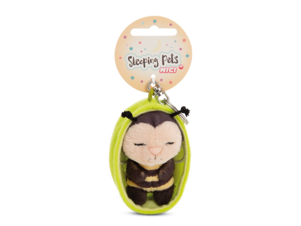 NICI klíčenka spící Včelka 12 cm, zelený košík, GREEN