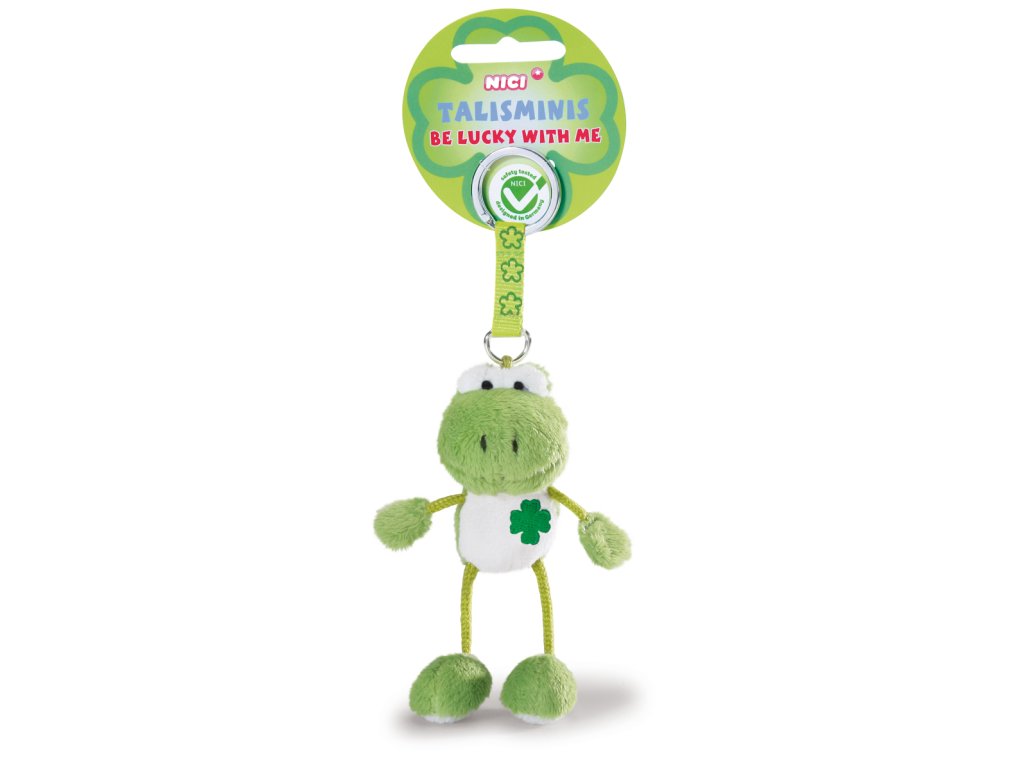 Talisminis žába z nadýchaného měkkého plyše je rozkošný dárek pro každý věk a příležitost. Jako 7cm klíčenka a talisman pro štěstí nosí žabka na hrudi čtyřlístek, který podtrhuje nápis „Měj se mnou štěstí“. Malé zelené plyšové zvířátko vám zlepší náladu a bude krásným barevným společníkem. Plyšovou klíčenku lze pomocí pevného kovového kroužku připevnit na klíče, batoh, školní tašku nebo peněženku. Rozměry klíčenky: 7 x 4,3 x 3,5 cm. Věk 3+