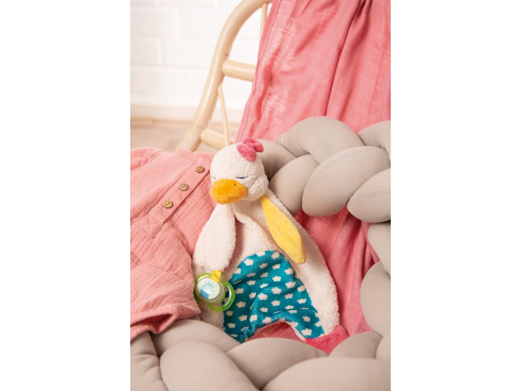Muchláček je nepostradatelným společníkem pro každé miminko na hraní nebo mazlení. Muchláček Husička Gilli je vyrobena z velmi hebkého materiálu a má upevňovací kroužek na dudlík. Husička s růžovou mašlí na hlavě a rozkošnýma spícíma očima také zaujme svými oranžovými, tyrkysovými a růžovými barevnými akcenty. Doporučeno šetrné praní na 30°C. Rozměr: 26 x 25 x 8 cm. Rozměr balení: 30 x 12 x 8,5 cm. Věk: 0 m+