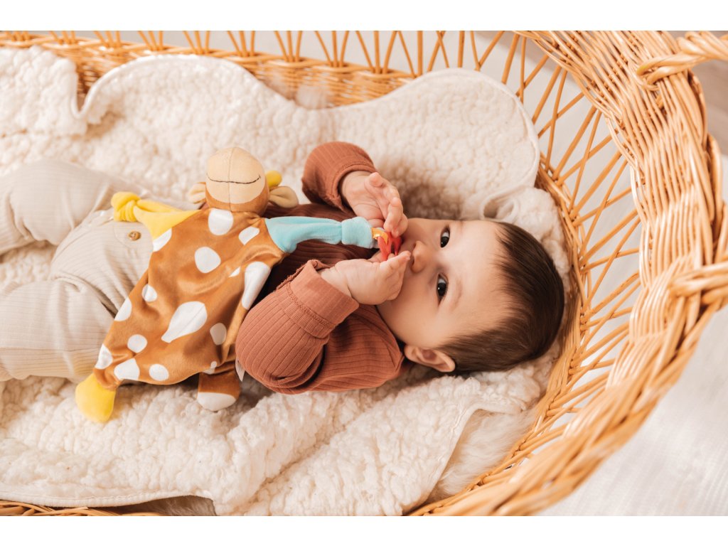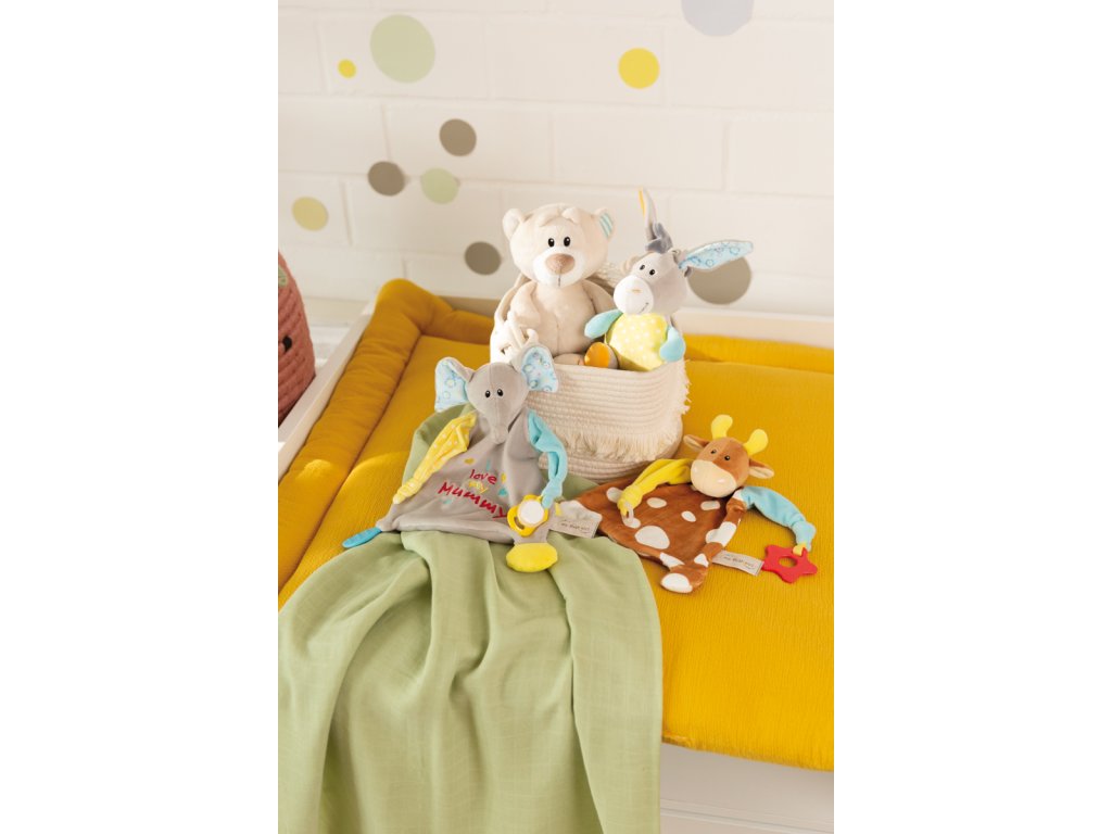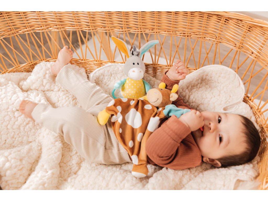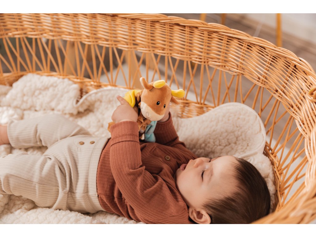 Muchláček je nepostradatelným společníkem pro každé miminko na hraní nebo mazlení. Muchláček kravička je vyrobena z velmi heboučkého plyšového materiálu a navíc disponuje kroužkem na dudlík a také strukturovaným kousátkem ze silikonu. Díky malým uzlíkům je snadno uchopitelný pro malé dětské ručičky. Kouzelný design kravičky s jemnými barvami je mazlivým kamarádem pro kluky i holčičky. Doporučeno šetrné praní na 30°C. Rozměr: 25 x 25 x 7,5 cm. Rozměr balení: 31 x 12 x 8 cm. Věk: 0 m+