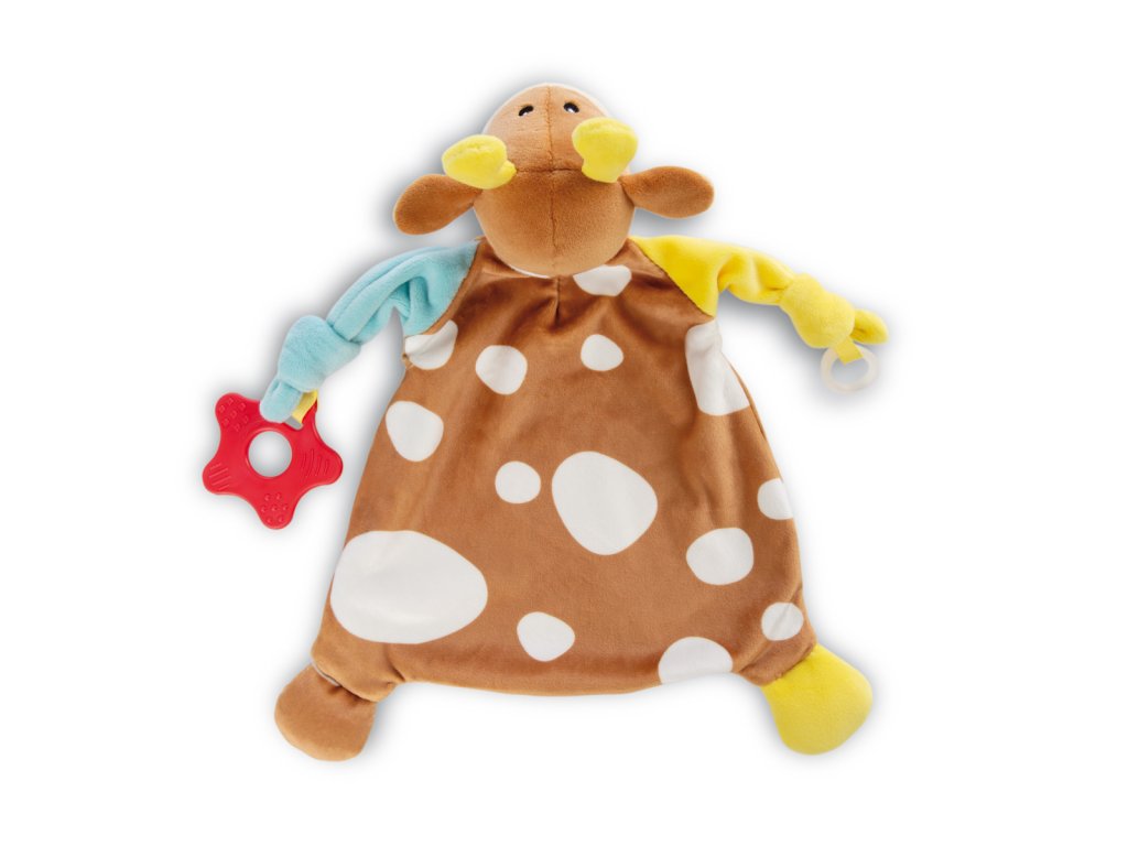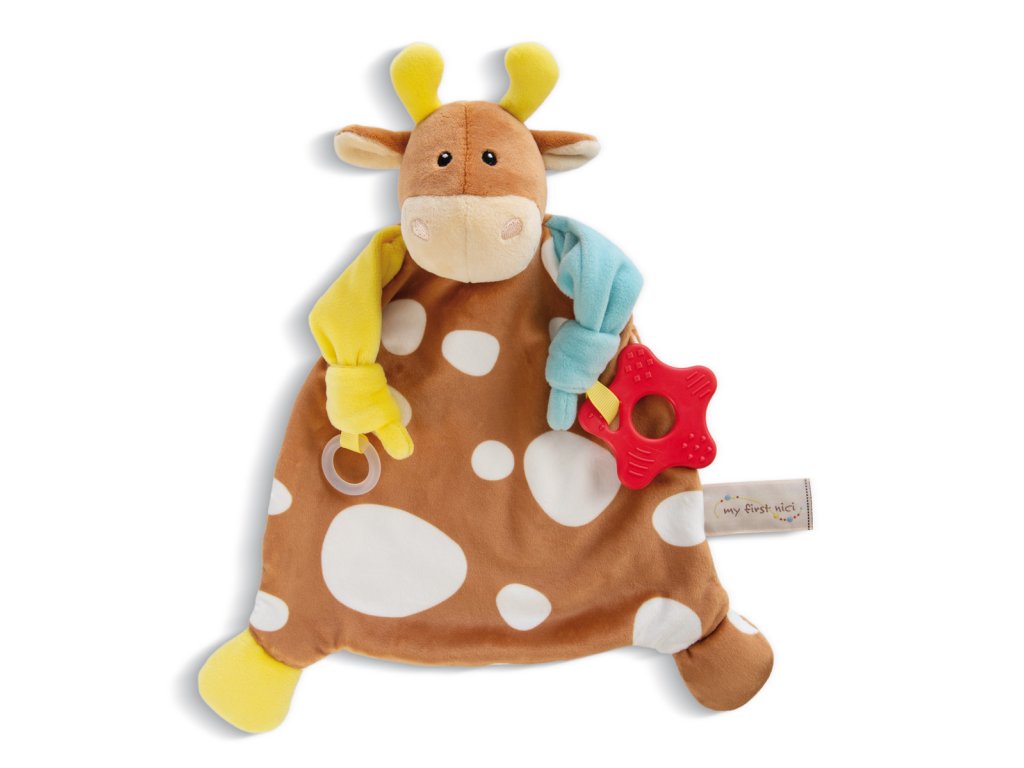 NICI MFN muchláček Kravička s kousátkem a úchytkou na dudlík 25x25cm