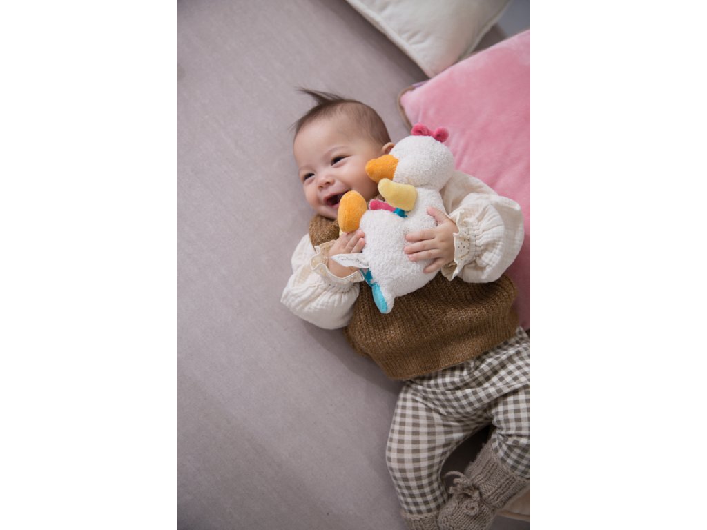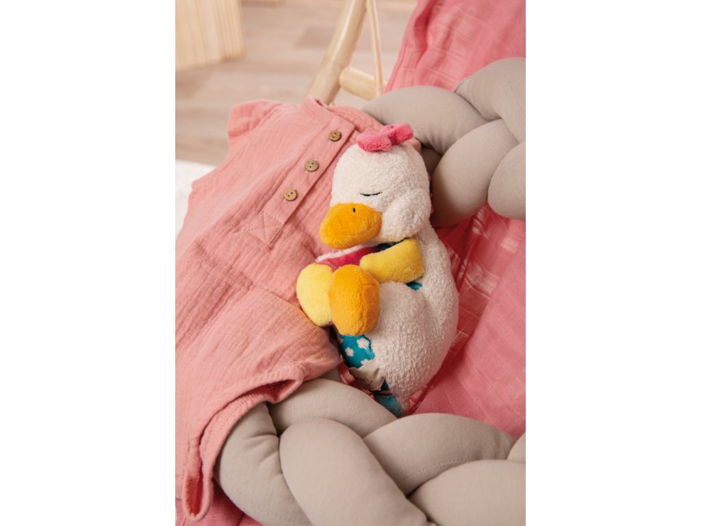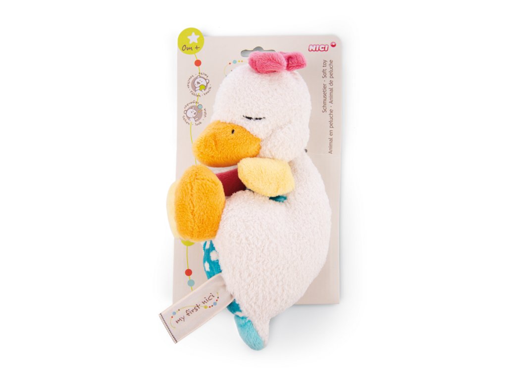 NICI Spící husička Gilli je roztomilá plyšová hračka, která je vyrobena z velmi jemného plyše a napomáhá lepšímu usínání miminek. Husička spí na boku, má okouzlující design s růžovou mašlí na hlavě, oranžovými chodidly, zobákem a barevným bříškem. Doporučeno šetrné praní na 30°C. Rozměr: 23 x 14 x 7 cm. Rozměr balení: 27,5 x 14 x 7,5 cm. Věk: 0 m+