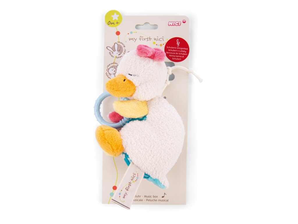 NICI Plyšová spící husička Gilli k zavěšení s hracím mechanismem. Husička s okouzlujícím designem je vyrobena z kvalitního plyše. Integrovaný natahovací mechanismus tiše hraje Schubertovu ukolébavku. Hrací mechanismus lze vyjmout a plyšovou hračku vyprat. Rozměr: 20 x 11 x 7 cm. Rozměr balení: 27,5 x 12 x 7,5 cm. Věk: 0 m+