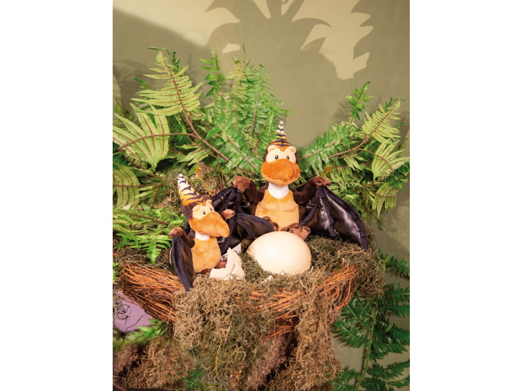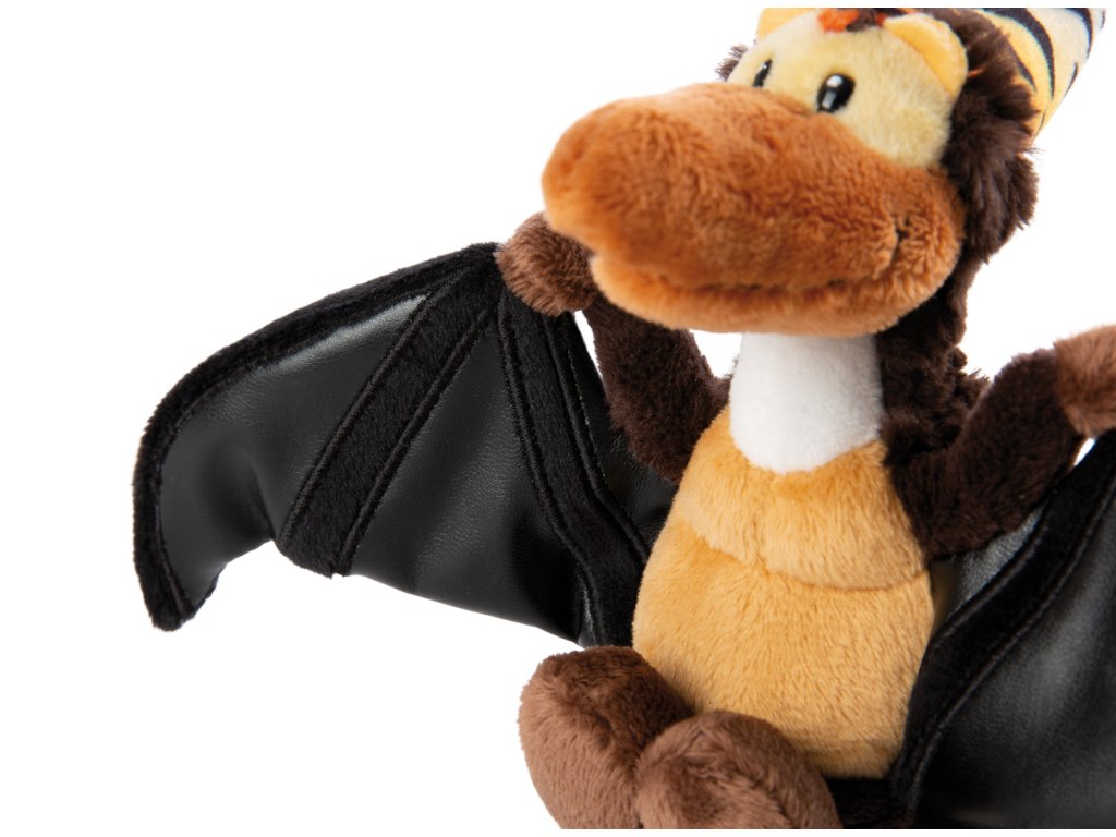 Veselý dinosaurus Orny se pyšní svými velkými křídly, na které je náležitě hrdý. Pruhovaný roh a huňaté tělo z něj dělají dobrého společníka. V sérii GREEN se téměř výhradně používají plyšové a výplňové materiály vyrobené z recyklovaných materiálů. Výška: 17cm. Věk: 0+