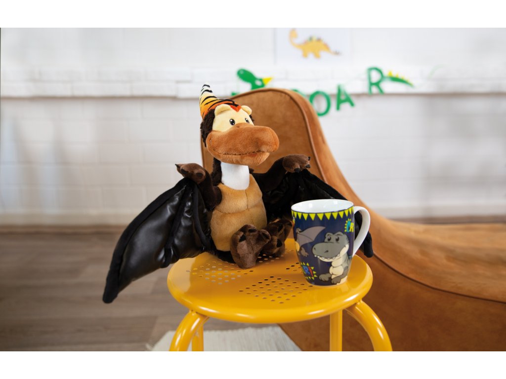 Veselý dinosaurus Orny se pyšní svými velkými křídly, na které je náležitě hrdý. Pruhovaný roh a huňaté tělo z něj dělají dobrého společníka. V sérii GREEN se téměř výhradně používají plyšové a výplňové materiály vyrobené z recyklovaných materiálů. Výška: 35cm. Věk: 0+