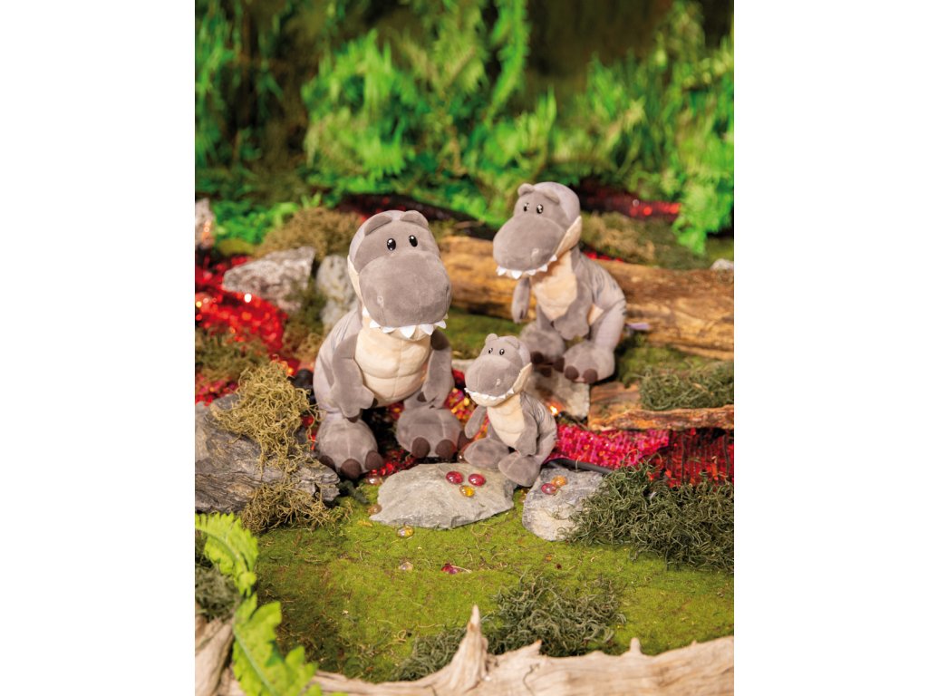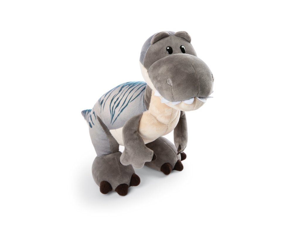 Roztomilý plyšový dinosaurus Tony-Rex s modrými pruhy na zádech. Roztomilá vyšívaná očka a hebký kožíšek z něj dělají bezva kamaráda. V sérii GREEN od Nici se téměř výhradně používají plyšové a výplňové materiály vyrobené z recyklovaných materiálů. Výška: 25cm. Věk: 0+