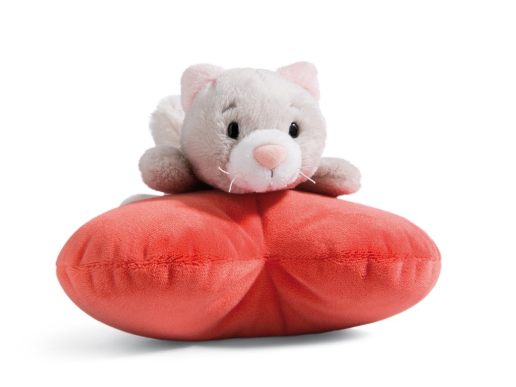 NICI plyš Love Kočička huňatá ležící, srdce, 13cm, GREEN