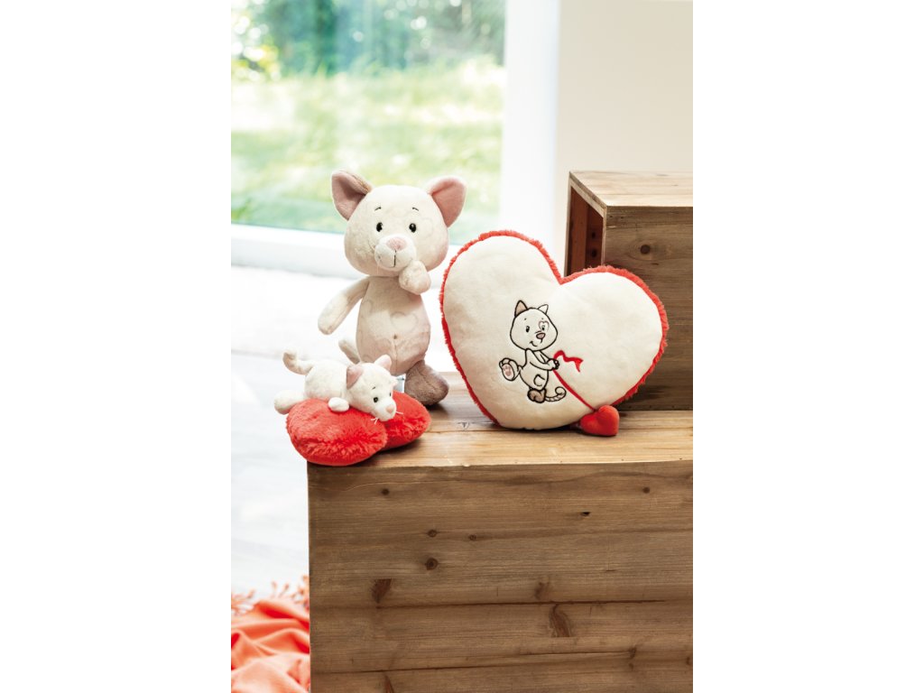 NICI plyš Love Kočička roztomilá ležící, srdce, 13cm, GREEN