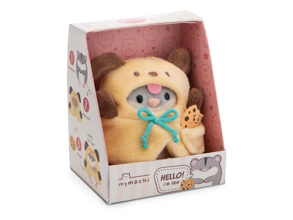 NICI plyš MyMochi Křeček Shai 8cm v kostýmu pejska a sušenkou,set dárkové balení 8,5x6,5x10cm
