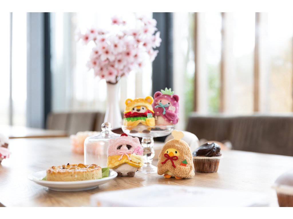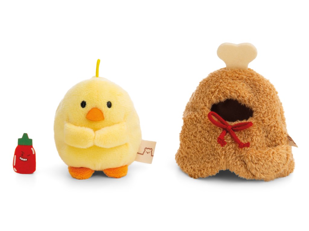 NICI plyš MyMochi Kuře Tschieps 8 cm v kostýmu kuřecí stehýnko a chilli om.,set dár.b. 8,5x6,5x10cm