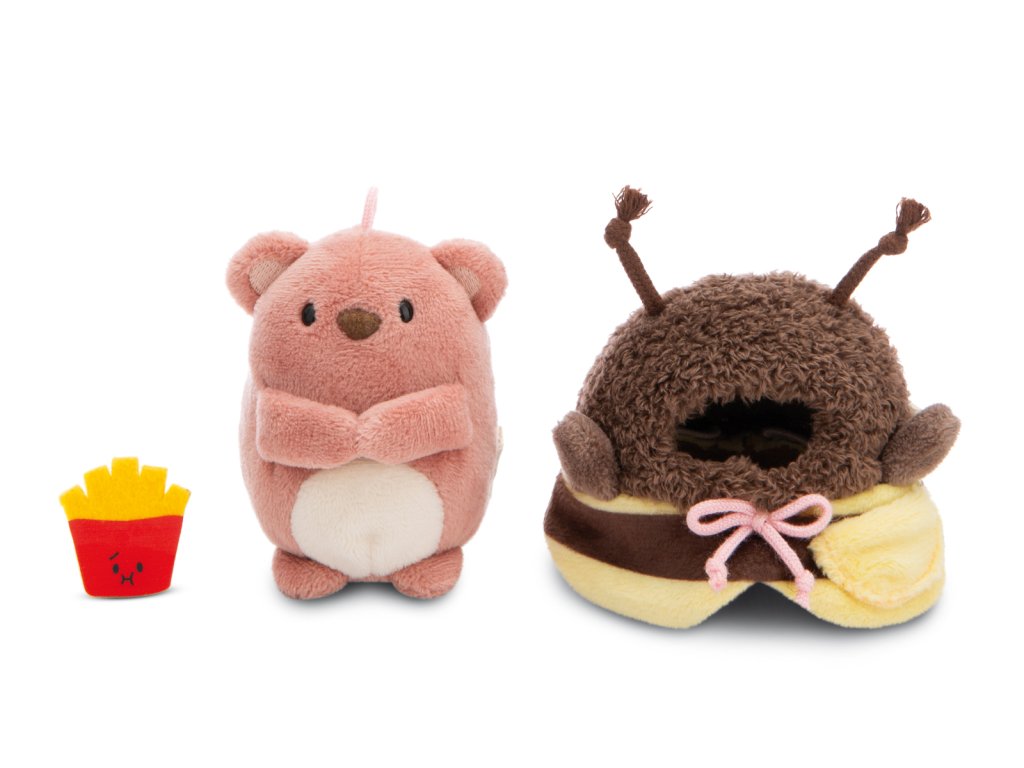 NICI plyš MyMochi Medvídek Nomo 8cm v kostýmu včelky a hranolkami,set dárkové balení 8,5x6,5x10cm