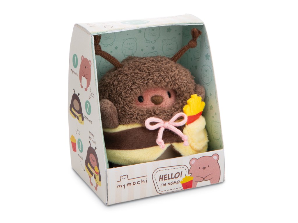 „Ahoj, já jsem Nomo a miluji svačiny!“ Nomo je nadýchaný hnědý medvídek vyroben z hebkého plyše NICI. Roztomilý medvídek Mymochi má na sobě legrační kostým včelky a samozřejmě se dodává se svým doplňkem Moodi – sáčkem hranolek. Okouzlující sada plyšových hraček 3 v 1 je balena v dárkové krabičce s informacemi o jméně, charakterových vlastnostech, herním konceptu a dalších postavičkách Mymochi. S pomocí vyměnitelných plyšových kostýmů se každý Mymochi může převléct do jiné role. Poutko na hlavě každé plyšové hračky Mymochi umožňuje připevnění na klíče, náhrdelníky, oblečení nebo batohy. Mymochi se během chvilky promění v lifestylové doplněk, které zaručeně přitáhne pozornost. Mymochi kamarádi se rychle stanou každodenními společníky, talismany pro štěstí, kamarády na hraní, mazlíčky a sběratelskými předměty. Rozměry hračky: 8 x 8 x 7 cm. Rozměry balení: 10,5 x 8,5 x 6,5 cm. Věk: 12 m+