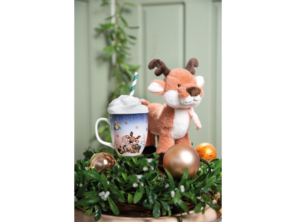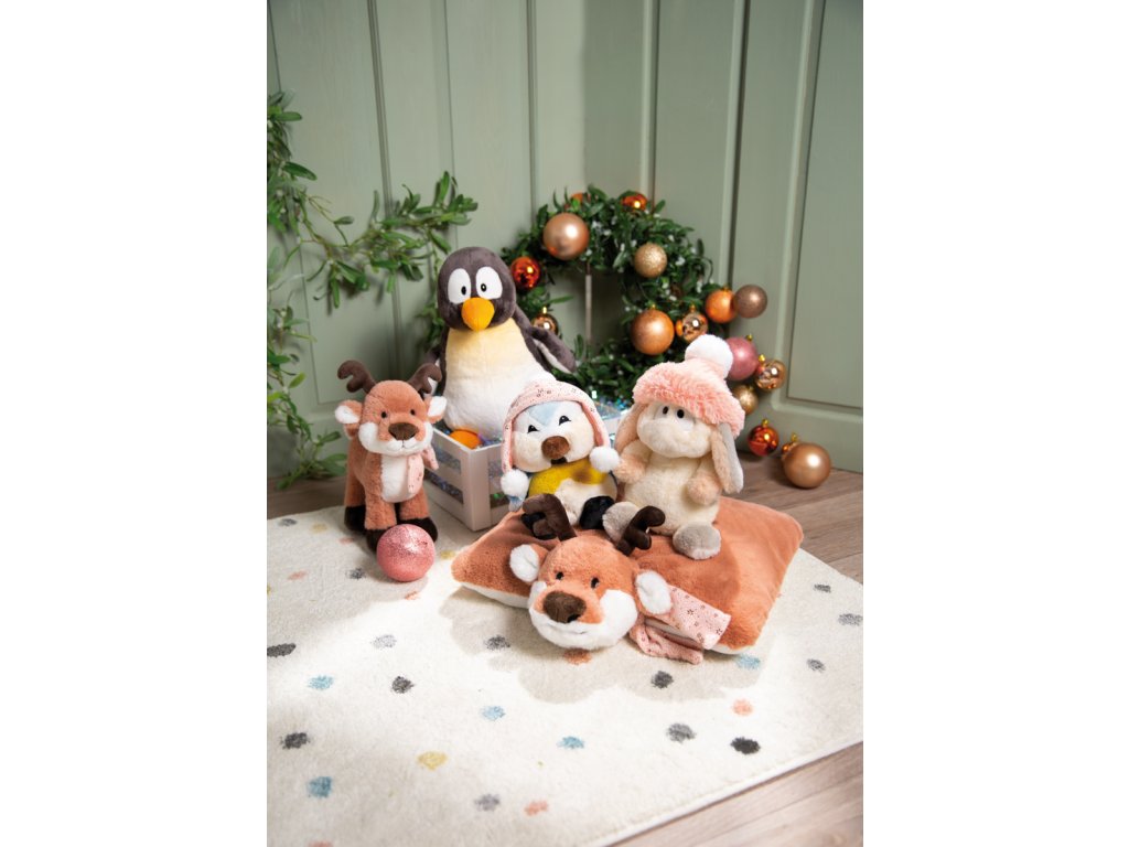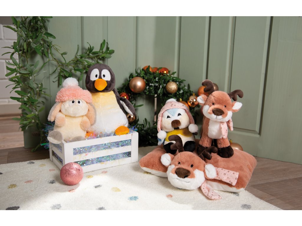 Dnes je velký den v severské vesnici. Každoroční závod sáňkařů klubu zimních sportů začne za pár minut a každý ze tří favoritů bude nadšeně leštit svoje závodní vozidla. Kdo vyhraje závod tentokrát? Liška, drzý zajíček, Noshy tučňák nebo sob Jonte? Poté se vystřelí ze startovací pistole. Všichni současně spadnou ze saní a valí se přes cílovou čáru. Nyní jsou tři vítězové, kteří si zaslouží velký zlatý pohár naplněný lahodnými vánočními sušenkami. Je vyroben převážně z recyklovaných plastových lahví a je tedy nejen skvělým kamarádem, ale také šetrnější k životnímu prostředí. Veselý sobík s krásnou zimní šálou. Výška: 25cm Věk: 0+