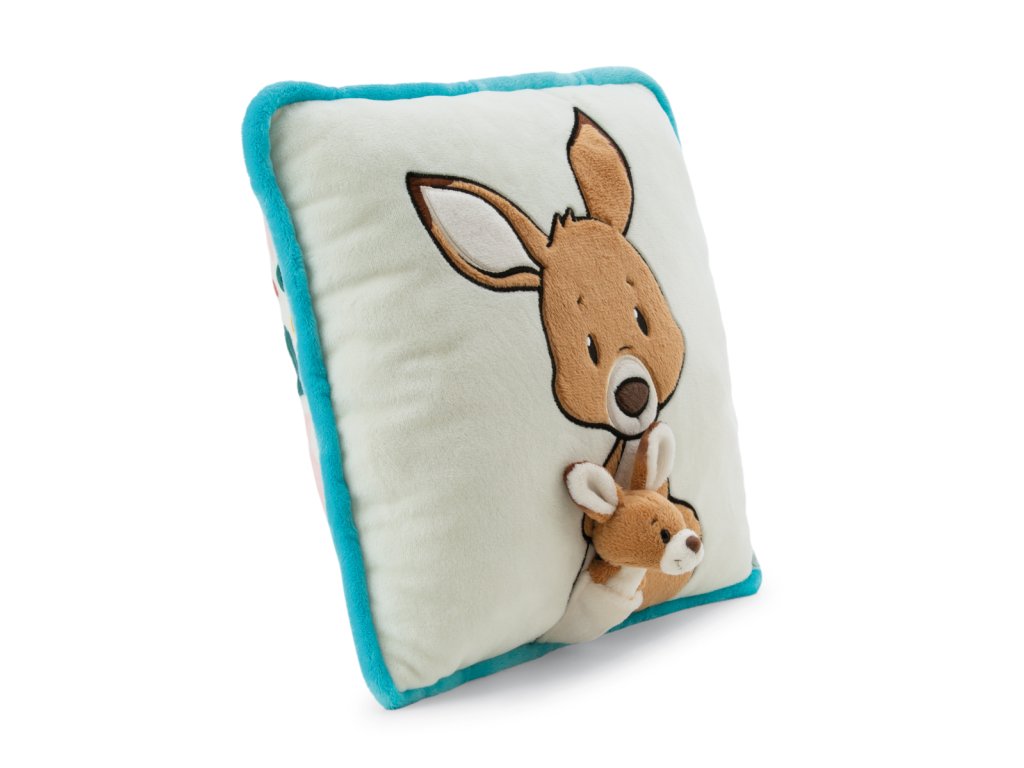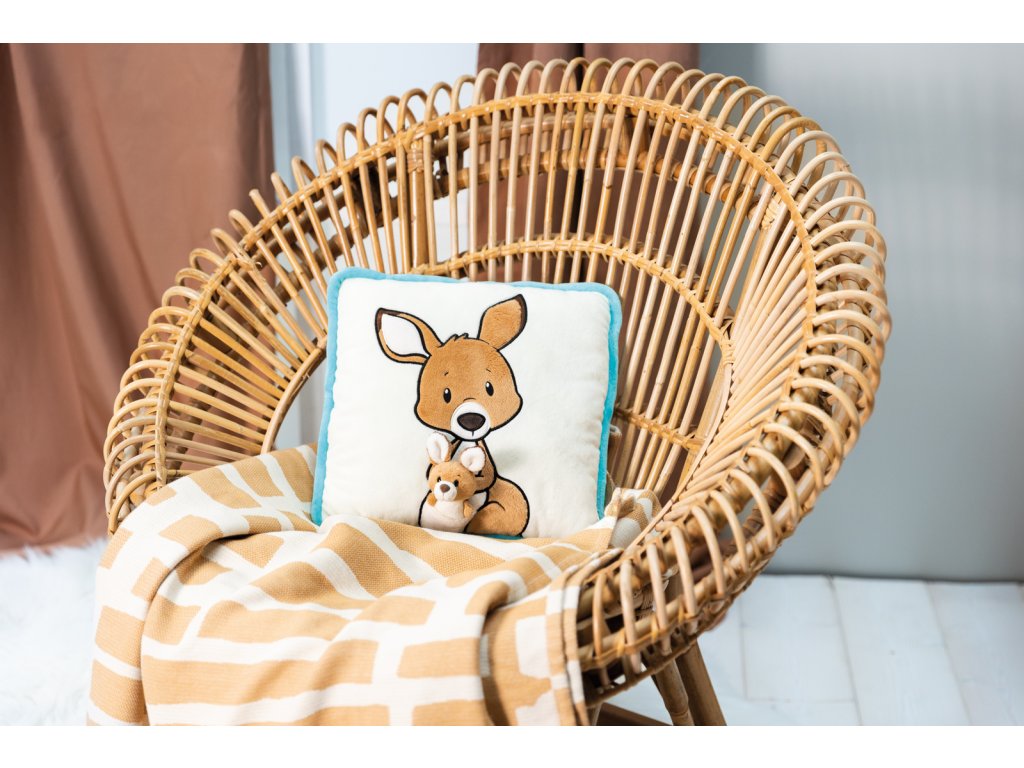 Čtvercový plyšový polštář z kolekce Wild Friends od NICI se vyznačuje vysoce kvalitní plyšovou aplikací roztomilé klokanky Kelly, která je vyobrazena na béžové přední straně plyšového polštáře. Z Kellyiny břišní kapsy vykukuje malé 3D klokaní mládě (7 cm), které je tam i připevněno. Zadní strana měkkého a nadýchaného polštáře je potištěna barevným grafickým vzorem a tyrkysové lemování zajišťuje, že se polštář Wild Friends stane stylovým dekorativním doplňkem v dětském pokoji. Polštář je součástí světa produktů NICI GREEN. . Pro produkty NICI GREEN se používá téměř výhradně plyš a výplňový materiál vyrobený z recyklovaných materiálů. Pro tento účel se na RPET zpracovávají převážně recyklované PET lahve. Rozměr polštáře: 30 x 30 x 13 cm. Věk: 0+