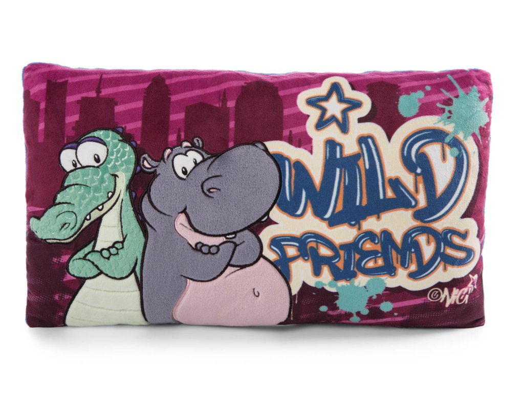 Divocí kámoši - hroch DJ Nilbert a krokodýl Croco McDile. Nyní jako roztomilý polstářek. Polštářek také šetří životní prostředí, protože je součástí kolekce NICI Green, vyrobené převážně z recyklovaných plastových lahví. Rozměry: 43 x 25 cm Věk: 0+