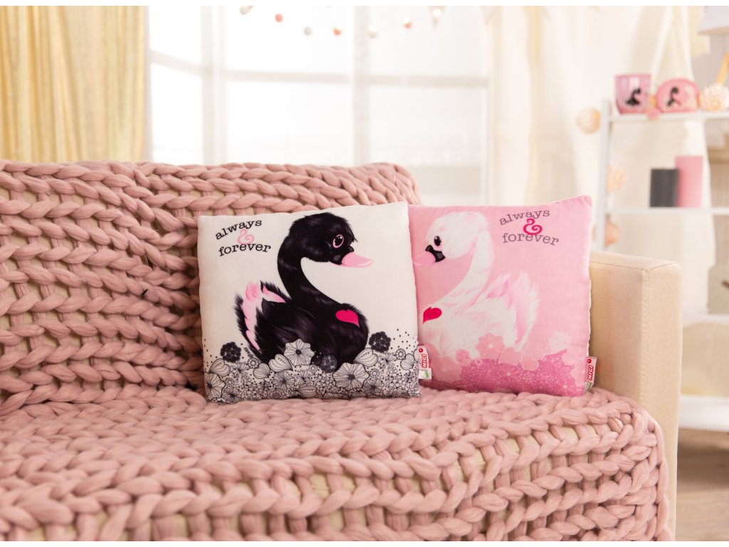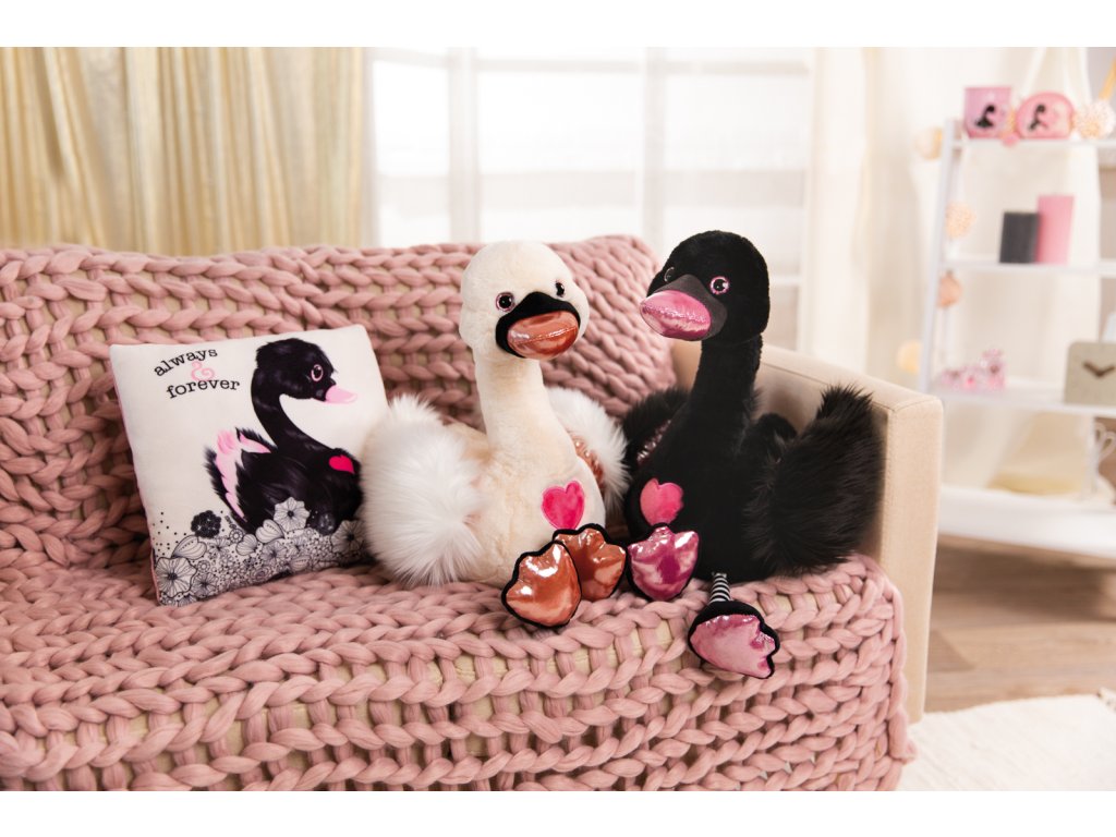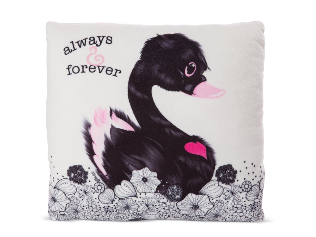 Vždy a navždy! Se čtvercovým polštářem LOVE, který je zároveň elegantní a mazlivý, budete mít vždy pravdu! Ideální dárek pro všechny věkové kategorie – nejen pro páry a zamilované. Nadýchaný plyšový polštářek je opatřen vysoce kvalitním obrázkovým potiskem zobrazujícím jedinečnou černou labuť LOVE s růžovými a černobílými barevnými akcenty na přední straně. Zadní strana polštáře je v jemném růžovém odstínu. S polštářovým protějškem ´´White LOVE Swan´´, který je k dispozici samostatně, spojíte labutí pár, jehož krky tvoří srdce a jsou považovány za symbol nekonečné lásky. Pro novou kolekci LOVE Classic, která je součástí iniciativy NICI GREEN, se téměř výhradně používají plyšové a výplňové materiály vyrobené z recyklovaných materiálů, jako jsou staré PET lahve. Rozměry: 30x30 cm