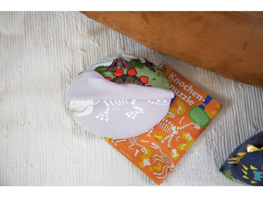 Oboustranný polštář s motivem roztomilého dinosaura Tony-Rexe. Po nasvícení polštář září ve tmě. V sérii GREEN od Nici se téměř výhradně používají plyšové a výplňové materiály vyrobené z recyklovaných materiálů. Rozměry: 32x26cm. Věk: 0+