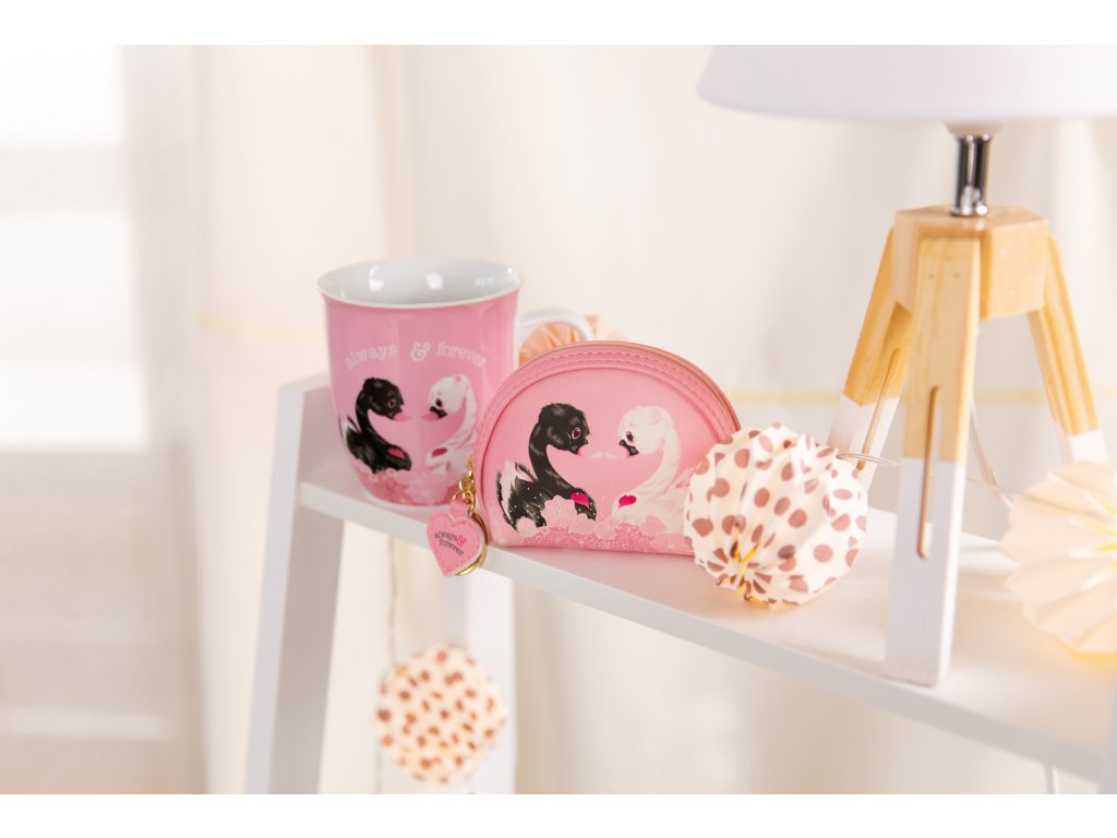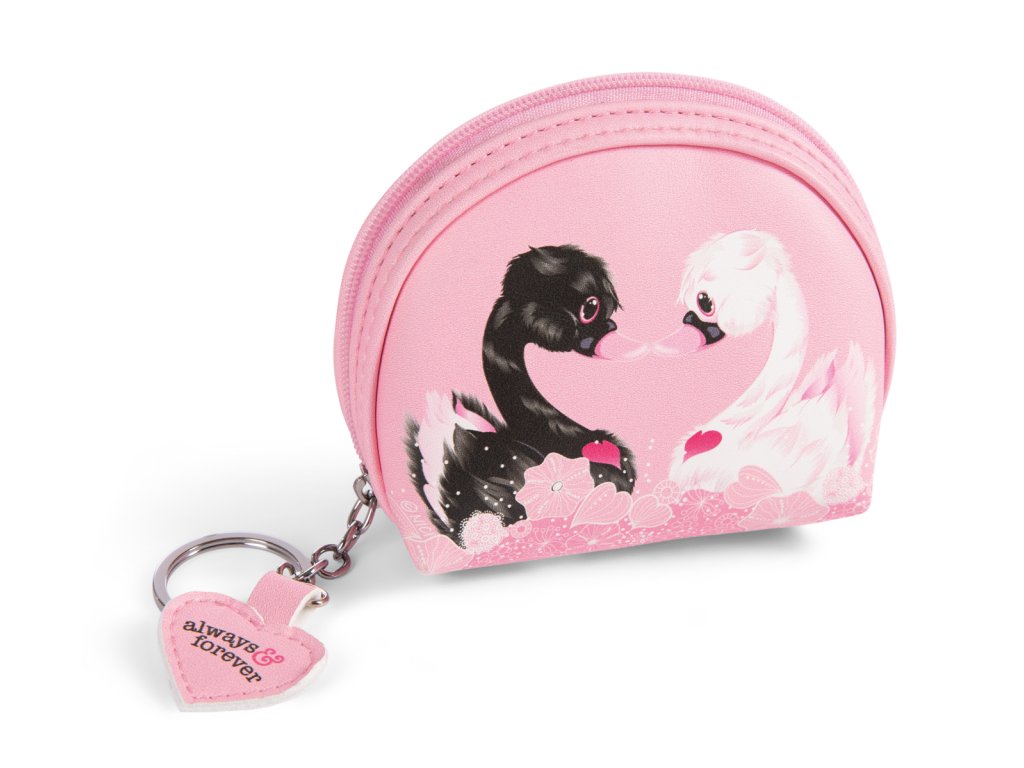 Pár labutí, jejichž krky tvoří srdce, je považován za symbol věčné lásky. Dvě labutě LOVE z kolekce LOVE Classic od NICI zdobí růžový penál, který má navíc pevný kovový kroužek na klíče. Kouzelný a zároveň praktický penál na zip nabízí prostor pro mince, make-up potřeby, propisky či jiné drobnosti a je vybaven přívěskem srdce ´´always & forever´´. Penál je součástí iniciativy NICI GREEN, jejíž produkty jsou vyrobeny z recyklovaných materiálů, jako jsou staré PET lahve. Rozměry: 11x5x9 cm. Věk: 3+