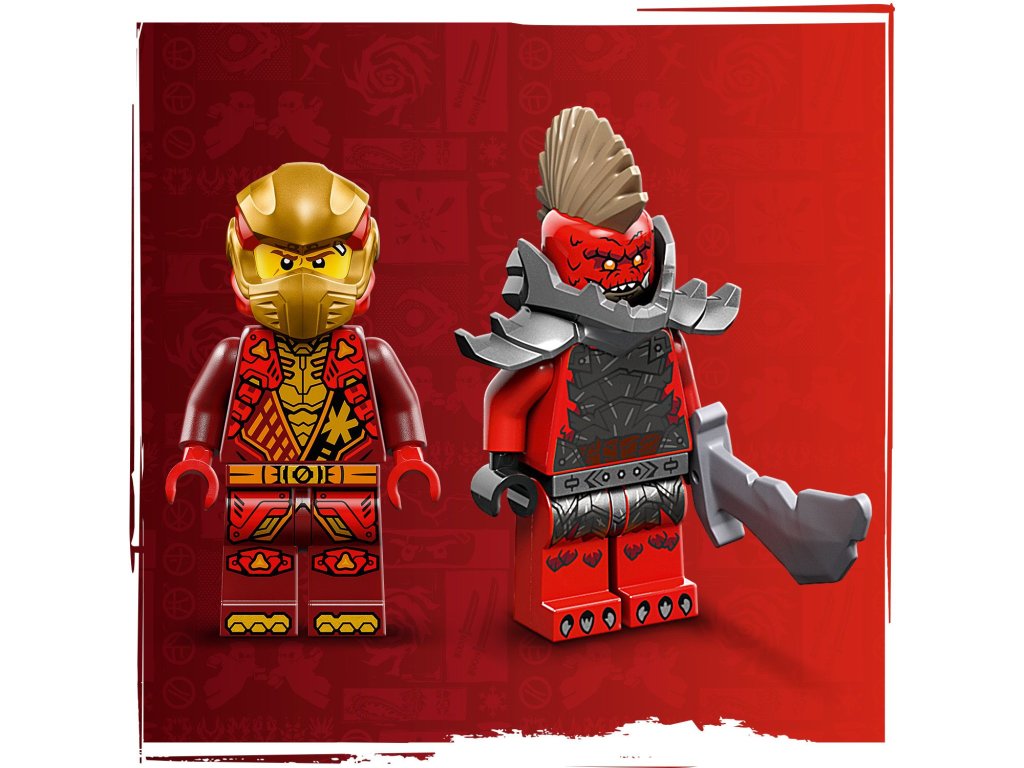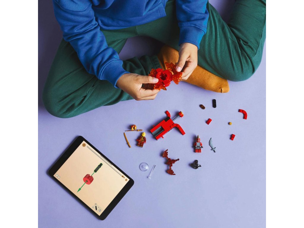 S akční stavebnicí Kaiův dračí Spinjitzu spinner (71823) si kluci a holky od 6 let připomenou napínavé scény z 3. řady televizního seriálu NINJAGO® Dračí povstání. Děti si s nadšením postaví tuto malou stavebnici LEGO® a stisknutím tlačítka odpalovače vypustí Kaiův dračí Spinjitzu spinner, který se roztočí, a budou sledovat, jestli 2 prvky síly odletí, když spinner zasáhne svůj cíl. Dobrodružná stavebnice obsahuje 2 minifigurky: Kaie s mečem, který jezdí v dračím Spinjitzu spinneru, a zlotřilého dračího zvěda vyzbrojeného sekerou. Součástí je také model malého dračího stvoření. Děti si můžou užít akční souboje dobra proti zlu se svými oblíbenými postavami NINJAGO. Ve stavebnicích LEGO NINJAGO se sestavitelnými bojovými hračkami (prodávají se samostatně) najdete robotické obleky, draky a chrámy a fanoušci si s nimi užijí hodiny úžasného akčního hraní. Aplikace LEGO Builder vám a vašemu dítěti ukáže snadnou a intuitivní cestu stavitelským dobrodružstvím.