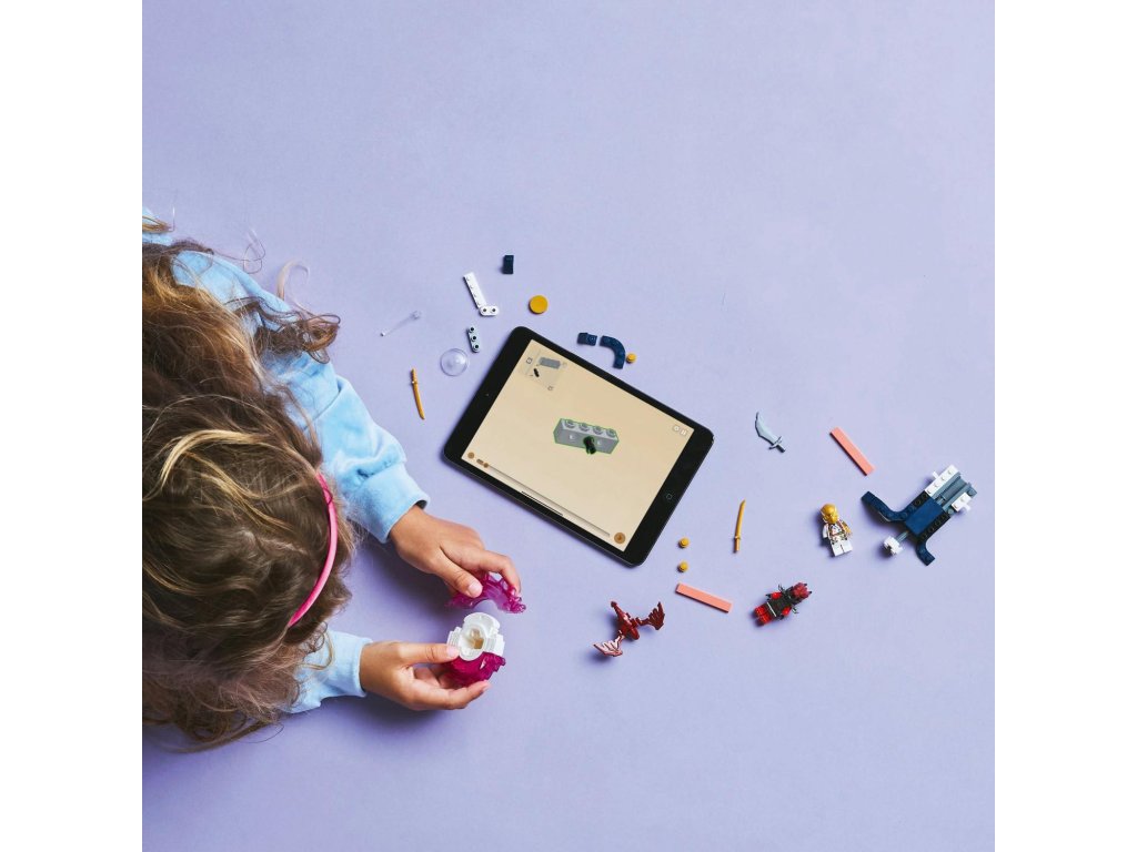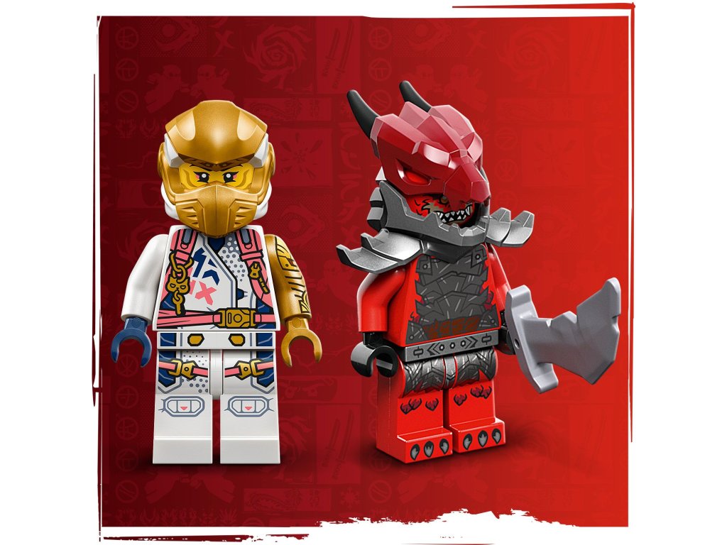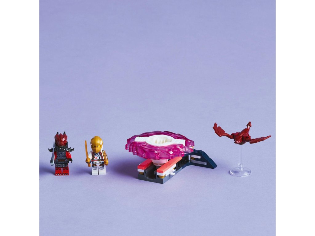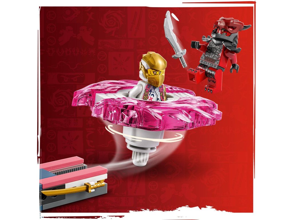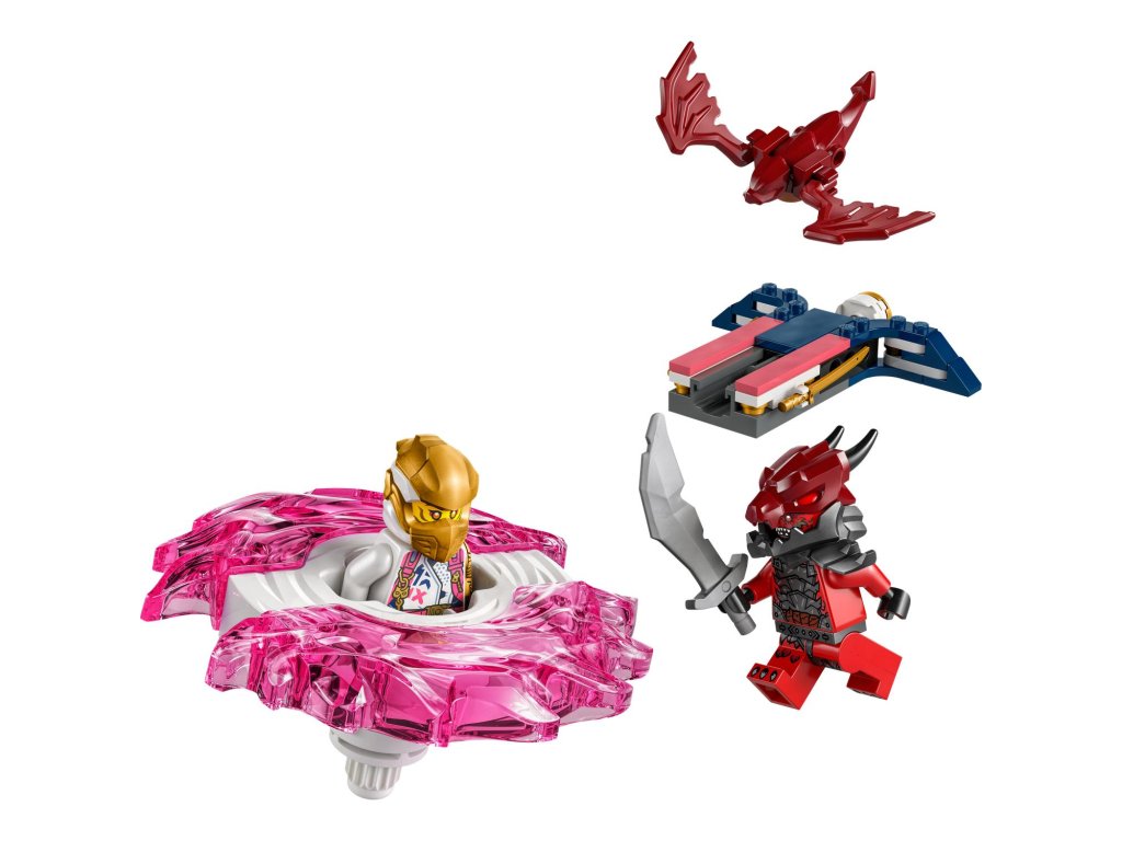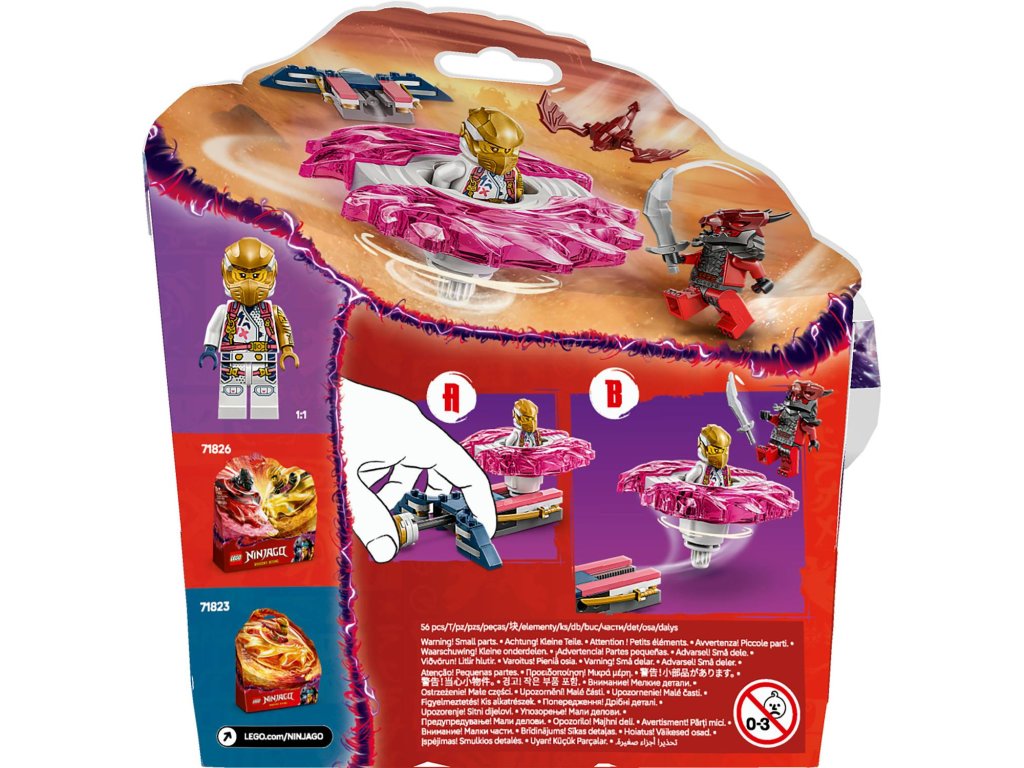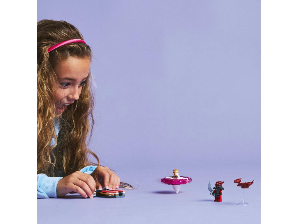 S akční stavebnicí Sorin dračí Spinjitzu spinner (71824) si kluci a holky od 6 let připomenou strhující scény z 3. řady televizního seriálu NINJAGO® Dračí povstání. Děti si s nadšením postaví tuto malou stavebnici LEGO® a stisknutím tlačítka odpalovače vypustí Sorin dračí Spinjitzu spinner, který se roztočí, a budou sledovat, jestli 2 prvky síly odletí, když spinner zasáhne svůj cíl. Dobrodružná stavebnice obsahuje 2 minifigurky: Soru, která jezdí v dračím Spinjitzu spinneru a má meč, a zlotřilého dračího bojovníka vyzbrojeného mečem. Součástí je také model malého dračího stvoření. Děti si můžou užít akční souboje dobra proti zlu se svými oblíbenými postavami NINJAGO. V dalších bojových stavebnicích z řady LEGO NINJAGO pro děti najdete roboty, draky a chrámy, se kterými se fanoušci vydají na úžasná akční dobrodružství s nindži. Aplikace LEGO Builder vám a vašemu dítěti ukáže snadnou a intuitivní cestu stavitelským dobrodružstvím.