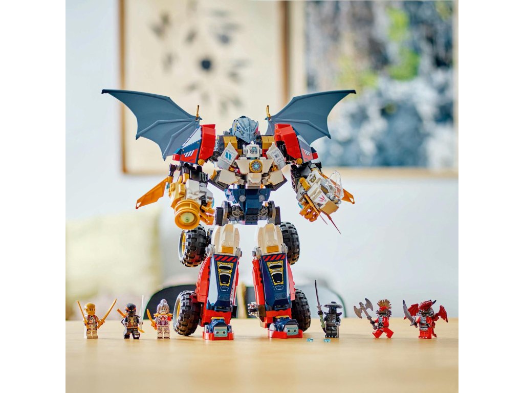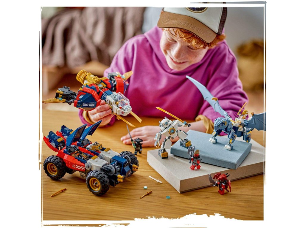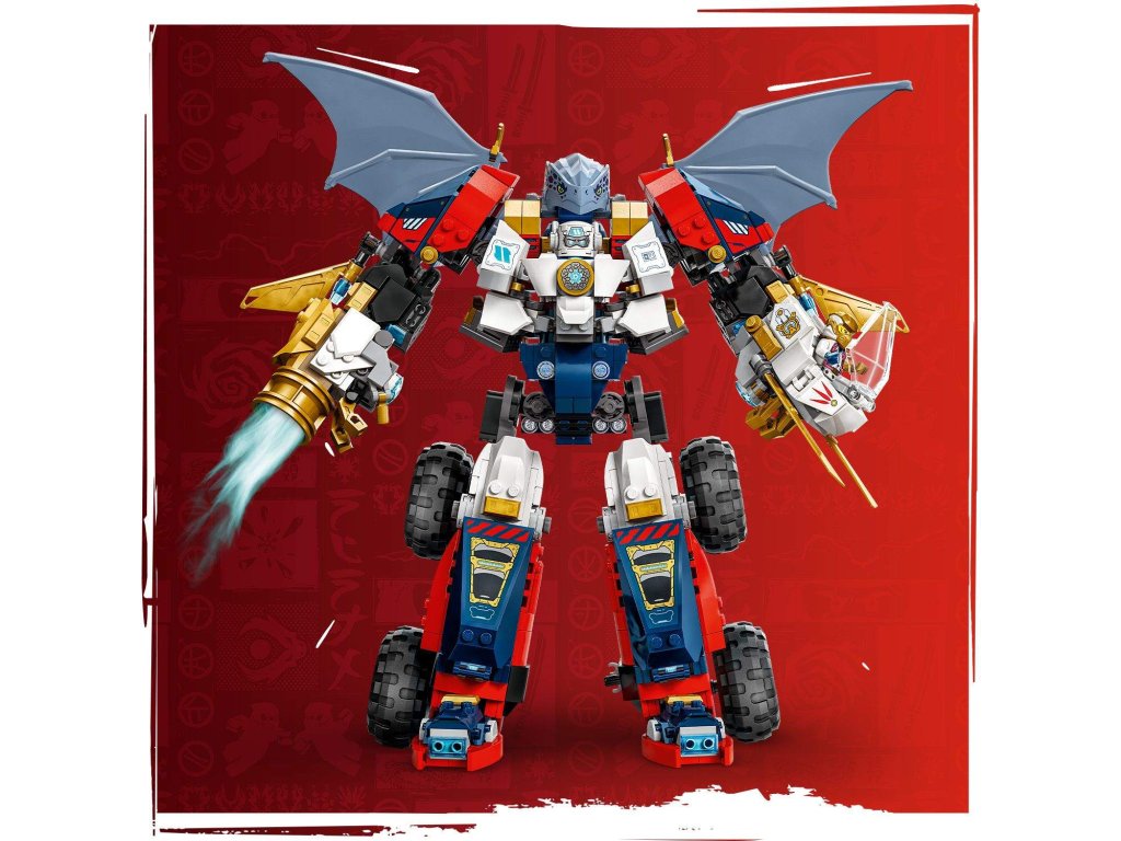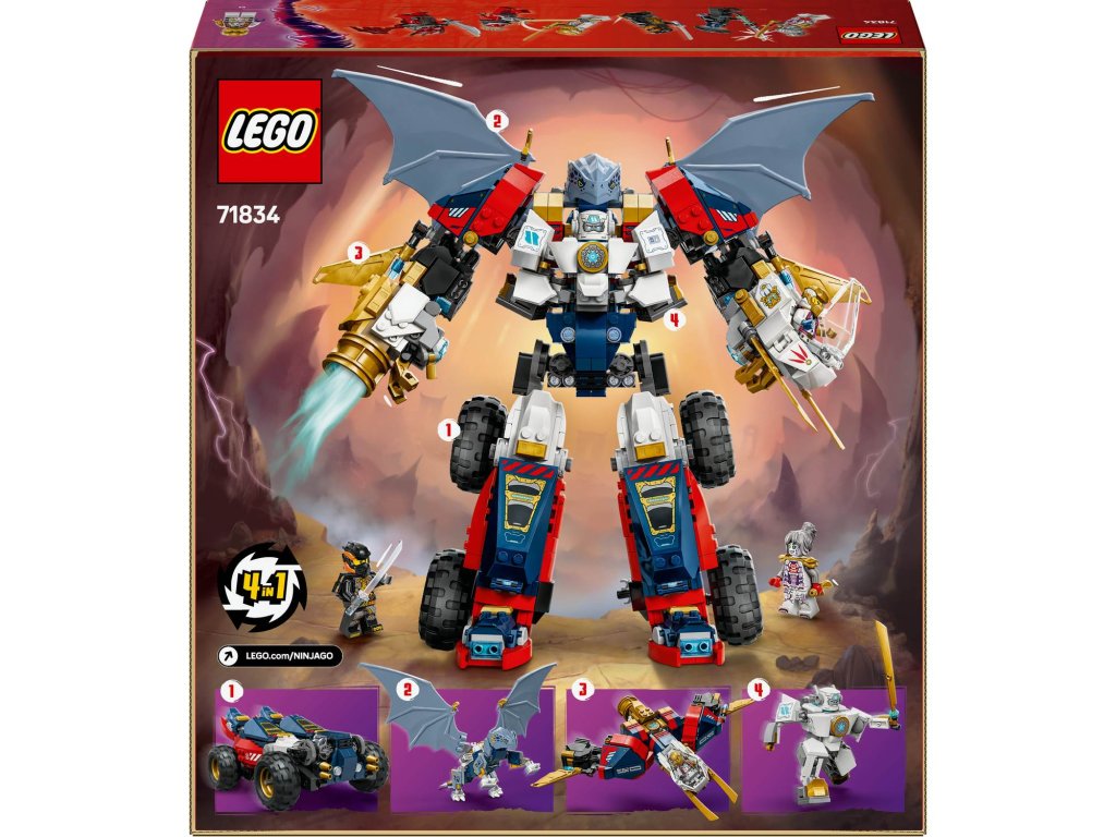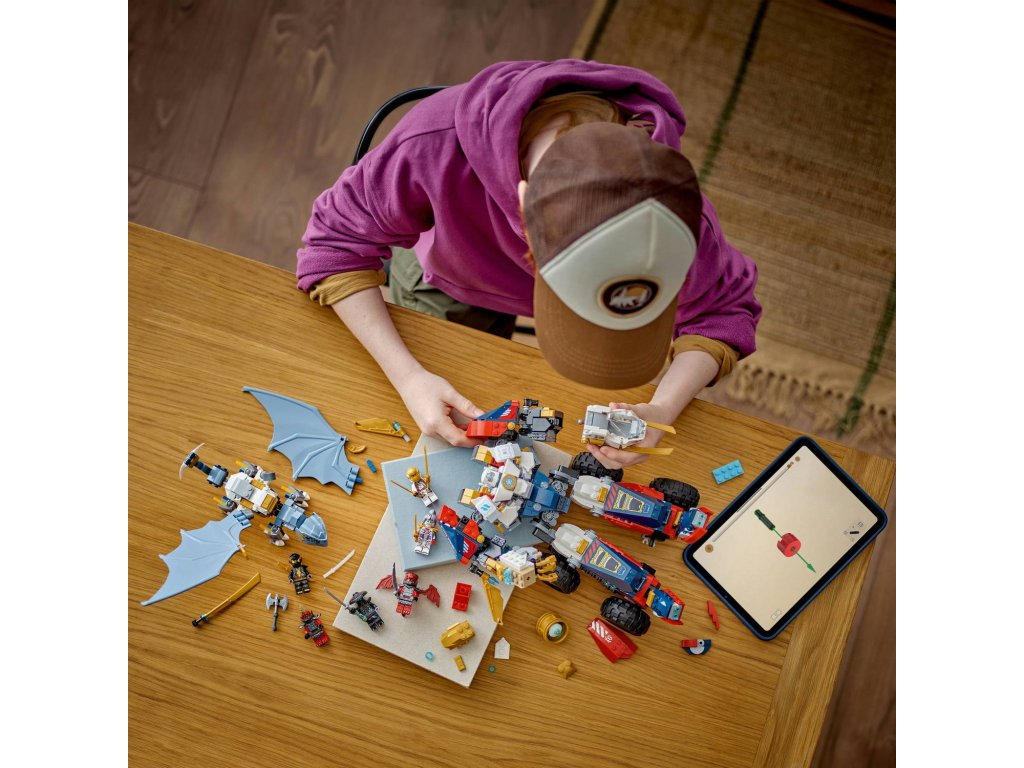 Kluci a holky od 9 let si užijí nekonečné herní možnosti při přehrávání napínavých scén ze 3. řady televizního seriálu NINJAGO® Dračí povstání se stavebnicí Zaneův ultrakombo robot (71834) 4 v 1. Děti si užijí spoustu zábavy s úžasným velkým komborobotem s pohyblivýma nohama, chodidly, pažemi, zápěstími, prsty a hlavou, dračími křídly, kokpitem a 2 vystřelovači. Robota pak rozdělí na 4 menší modely: Draka s pohyblivými prvky a křídly; model letadla s pohyblivými motory a otočným kokpitem; model auta se 4 velkými terénními koly a 2 otevíracími kokpity, včetně jednoho se skrytými blastery, a akční figurku Zanea. Tato nindžovská stavebnice obsahuje 6 minifigurek, se kterými si děti užijí nespočet hodin hraní na souboje. Nindžové Sora a Cole a jejich spojenkyně Pixal jsou vyzbrojeni parádními nindžovskými zbraněmi, aby se mohli postavit zlotřilé trojici: Noktovi, dračímu bojovníkovi a dračímu zvědovi, kteří mají vlastní zbraně.