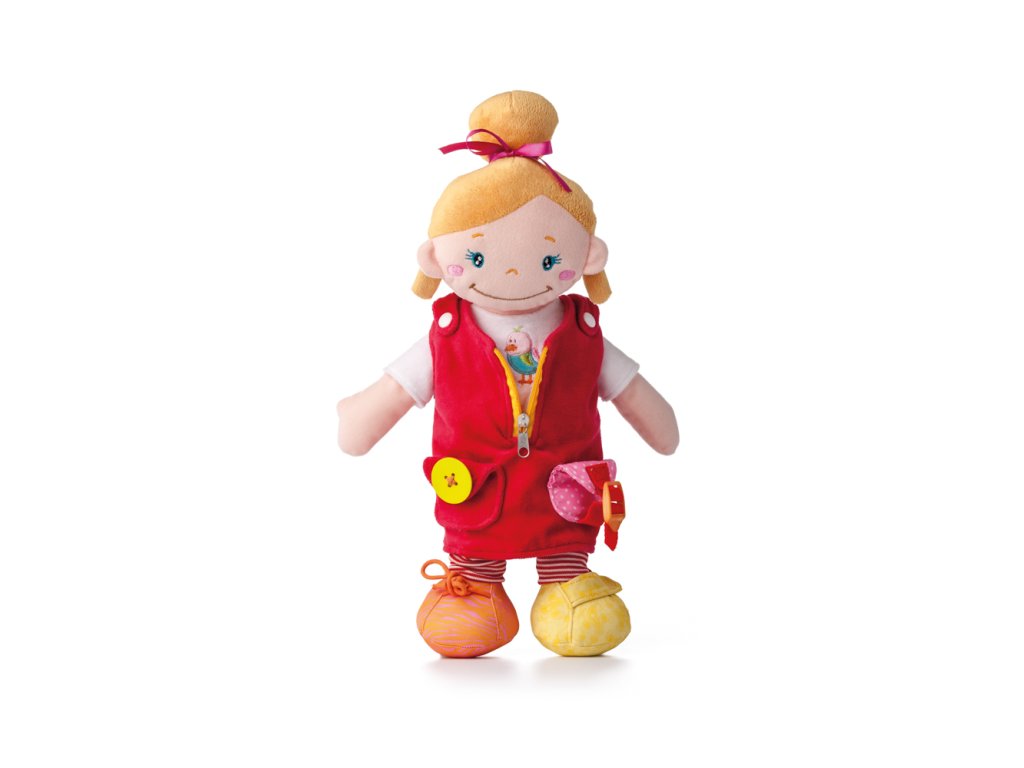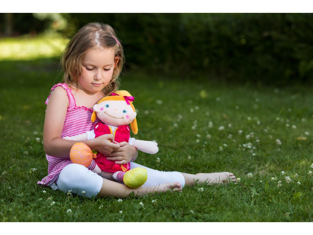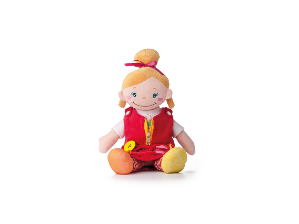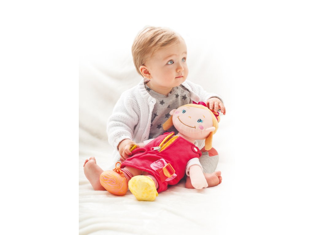 Plyšová panenka ALANI je něžná holčička. Patří do kolekce Niny a jehjí nejlepší kamarád je panáček Keiki. Interaktivní panenka je mazlíček , ale také edukativní kamarádka. Děti si při hře rozvíjejí jemnou motoriku. Šatičky lze svlékat, na nožkách je suchý zip pro opakovaný trénink. Na kapse u vestičky je všitý veliký dřevěný knoflík na trénink zapínání. Všechny použité materiály jsou příjemné na dotek a nabízí dětem mnoho edukativních aktivit. Design německé návrhářky Britty Hurter. Výška: 414 cm Věk: 36m+