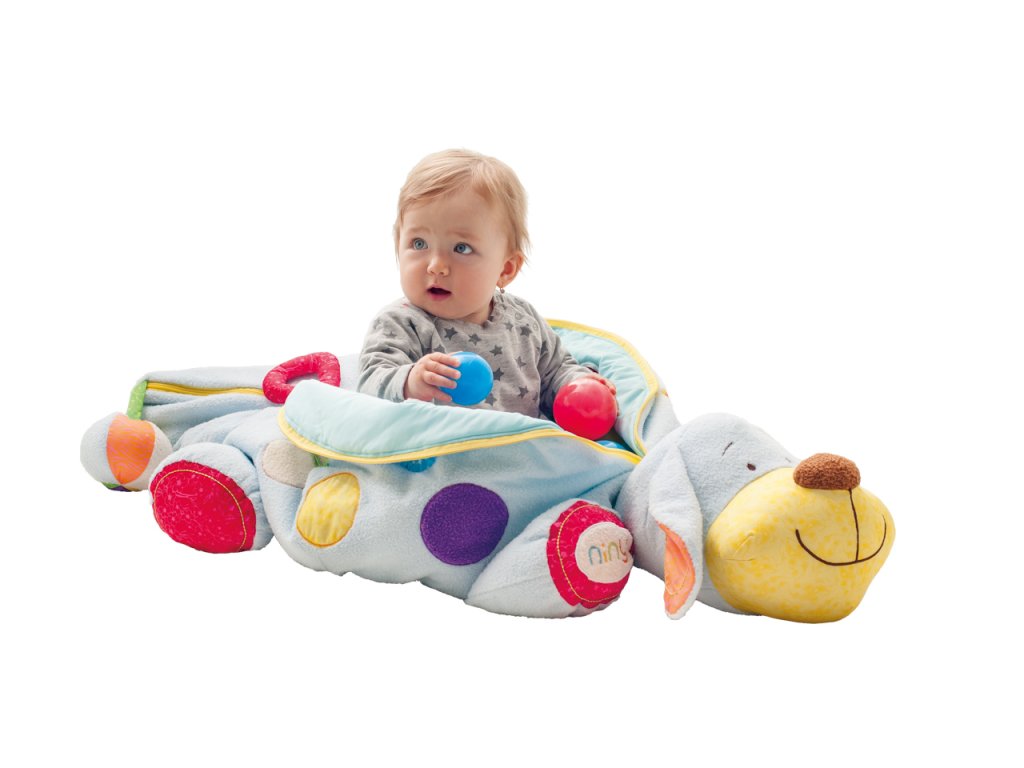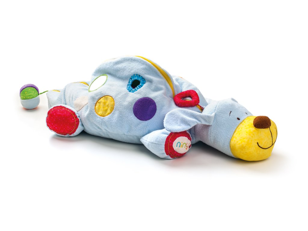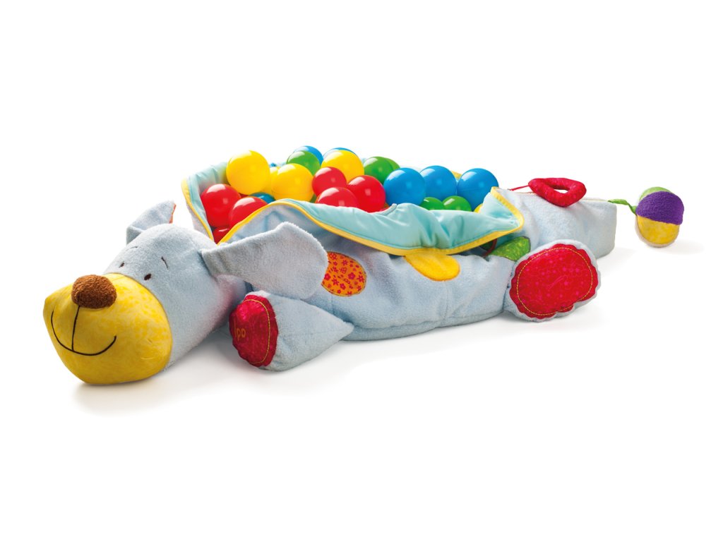 Velký plyšový kamarádk pejsek ´´ IPO´´ s 60ti míčky je uklidňující hračka z kolekce Niny. V jeho těle je uloženo 60 barevných plastových míčků. Ocásek je vyrobený z látkového míčku, který vydává zvonivý zvuk. Na těle pejska jsou hrací prvky, prostrkávací okénka, zrcátko. Ouška šustí. Všechny použité materiály jsou příjemné na dotek a nabízí dětem ničím nerušený čas relaxace. Design německé návrhářky Britty Hurter. Rozměr: 124 cm (šířka) Věk: 6m+. Video: https://www.youtube.com/watch?v=Jt_lGXfD7Bo