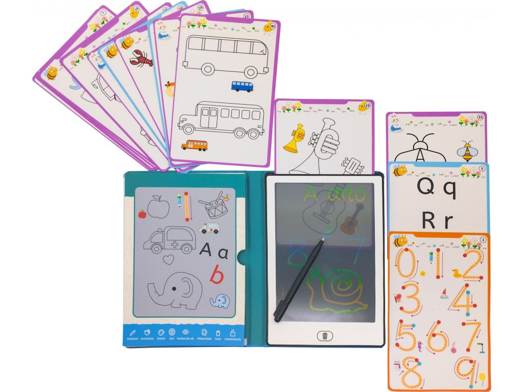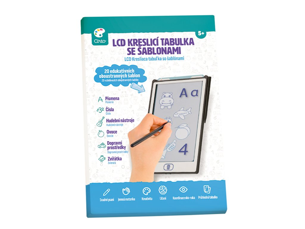 ARTO LCD Kreslicí tabulka se šablonami je průhledná LCD tabulka, která dětem umožňuje kreslit, psát vzkazy nebo hrát hry bez nutnosti použití papíru. Součástí balení bývají i šablony, které se vkládají pod průhlednou plochu a pomáhají dětem s nácvikem psaní, uvolňováním ruky, postupným kreslením zvířátek nebo si s nimi mohou zahrát piškvorky, lodě či hádání slov.