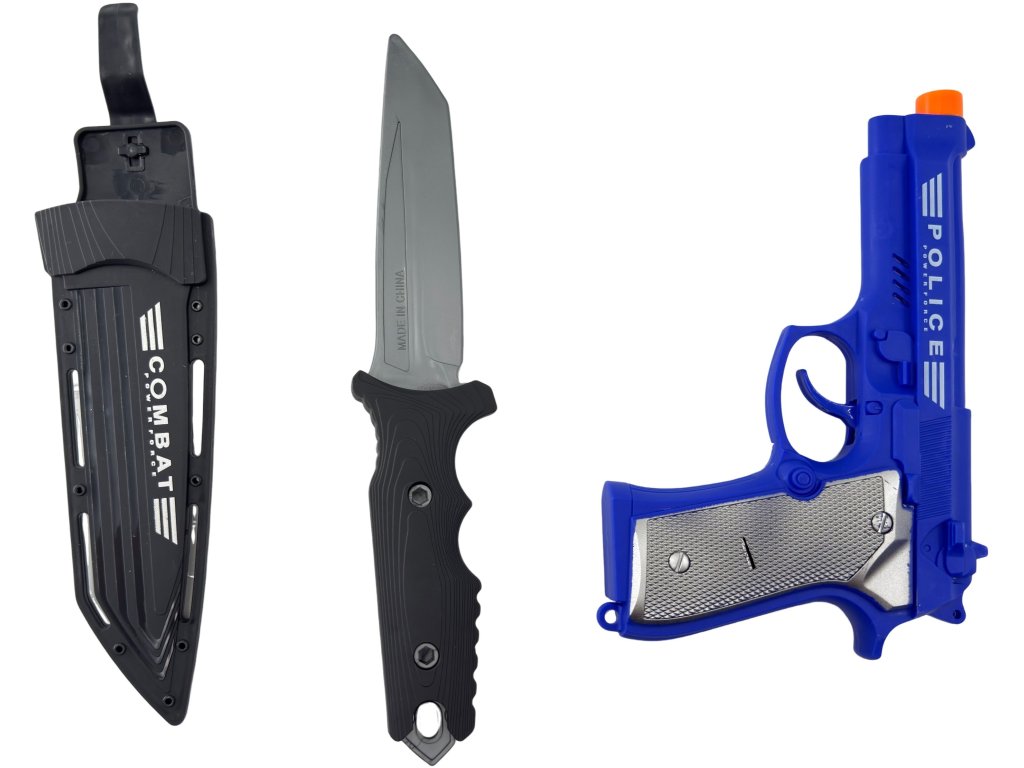 Nůž: Hračka nože, která je bezpečná pro dětské hraní a doplňuje výbavu malého policisty.