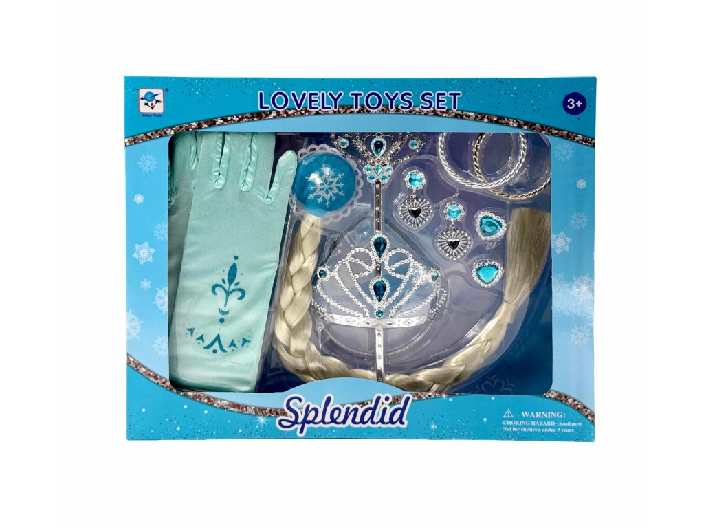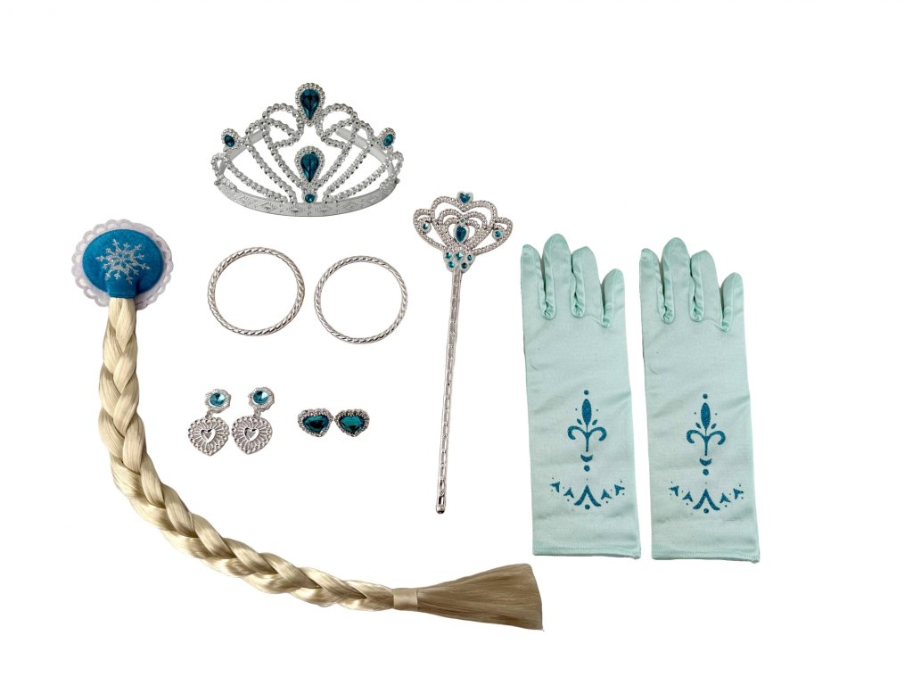 Nádherná sada šperků, která má přidělaný dlouhý cop, díky němu se můžete změnit na princeznu Elzu, nebo kteroukoliv jinou milovanou princeznu.