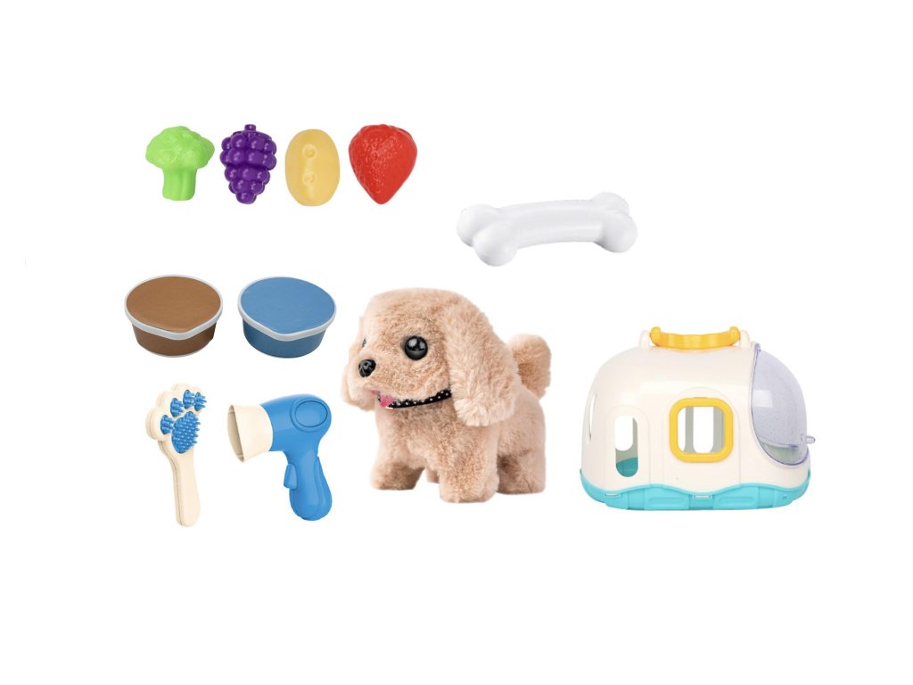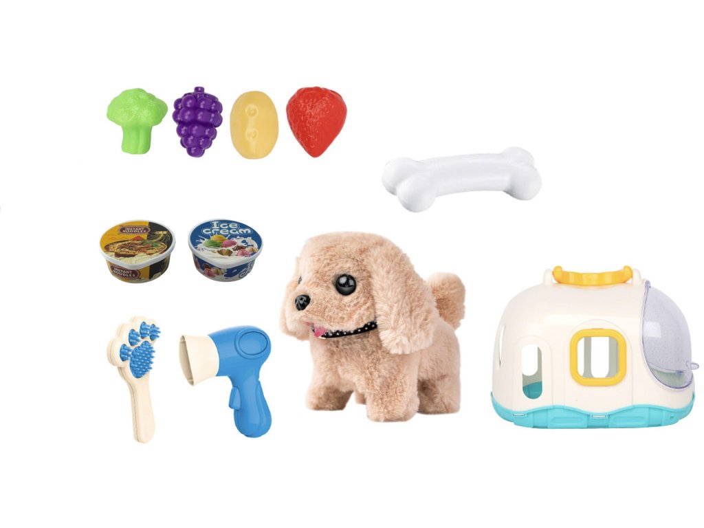 Příslušenství pro péči: V balení najdete hřebínek a fén, abyste se mohli o štěňátko starat a upravovat ho.