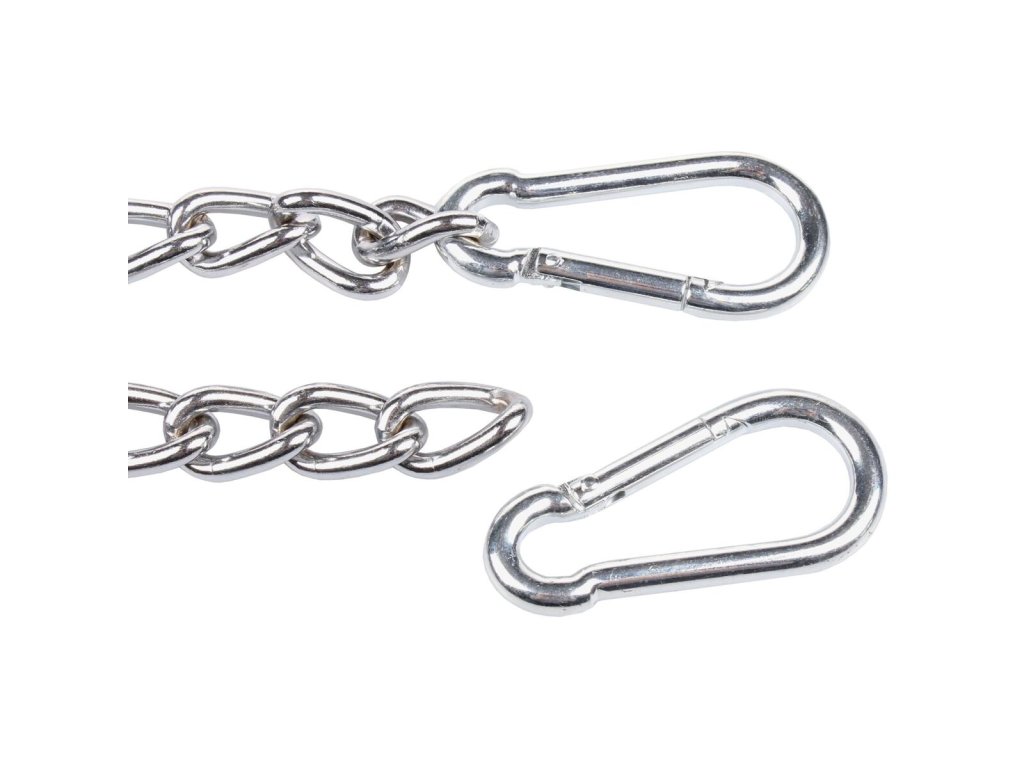 Náhradní řetěz s karabinami Merco Chain 66 využijete doma či na zahradě pro houpací sítě, boxovací pytle, houpačky, závěsná křesla apod. Ocelový řetěz má délku přibližně 56 cm, délka karabin je 7 cm a nosnost řetězu je do 120 kg. Hmotnost celého balení je 320 g. Uvedená cena platí pro 1 ks. - balení: 2 karabiny + řetěz - materiál: ocel - délka řetězu 56 cm - délka karabiny: 7 cm - nosnost 120 kg - hmotnost balení: cca 320 g - pro houpací sítě, boxovací pytle, houpačky, závěsná křesla apod.